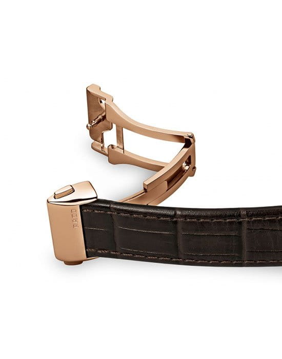 Аксессуар привлекает элегантным исполнением, узорчатый циферблат дополнен золотистыми стрелками и индексами. Корпус из хирургической стали 316L с PVD-покрытиемPVDУльтратонкое покрытие наносится в технике вакуумного напыления, сочетает в себе нитрид титана особой прочности со слоем золота или оксида хрома. Несёт в себе декоративную или защитную функцию. защищает швейцарский автоматический механизм ETA C07.611 с увеличенным запасом хода до 80 часов. Скелетонизированная задняя крышка. Антибликовая обработка сапфирового стекла. Сохранение водонепроницаемости до 5 бар. Ремешок из натуральной кожи с имитацией рисунка кожи крокодила. . Отображение текущего числа. Индикатор запаса хода - позволяет следить за временем, оставшимся до полной остановки часов. Диаметр корпуса: 41 мм.