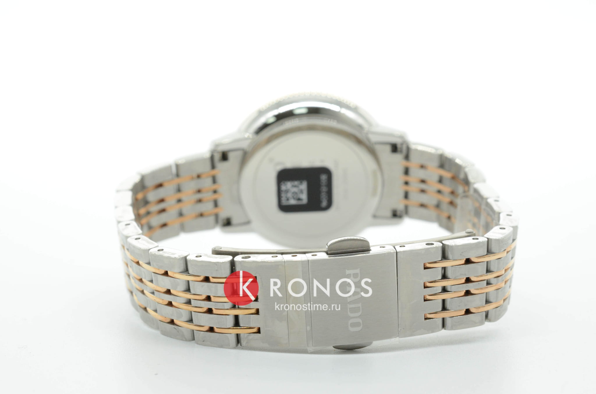 Швейцарские кварцевые часы Rado Coupole Classic Diamonds R22883923 воплощают в себе классическое очарование и утончённую элегантность. Циферблат этих часов защищён сапфировым стекломСапфировое стеклоПрочный и надёжный материал из кристалла сапфира синтетического происхождения, характеризующийся особой твёрдостью и устойчивостью к царапинам и повреждениям., которое славится своей устойчивостью к мелким механическим повреждениям, таким как царапины, что помогает сохранить их первоначальный внешний вид на долгие годы.