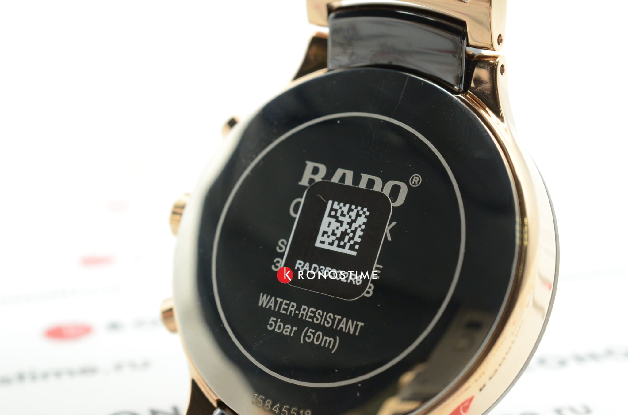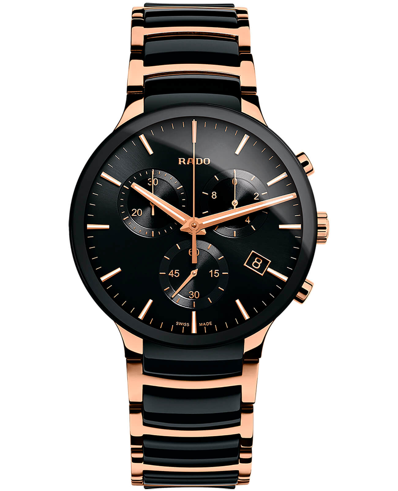 Премиальный хронографХронографФункция позволяет измерять отрезки времени с особой точностью: часы, минуты, секунды. Верным признаком хронографа является наличие на циферблате 3 дополнительных окошек-счётчиков. отличается лаконичным оформлением и использованием сдержанных оттенков. Такое исполнение позволяет носить часы с деловым, повседневным образом, костюмом на торжественный случай. Внутри надёжного корпуса из высокотехнологичной керамикиВысокотехнологичная керамикаИнновационный запатентованный Rado материал с гладкой или матовой поверхностью. Керамика за счёт кристаллической структуры обладает повышенной устойчивостью от возникновения царапин. Материал способен принимать температуру тела человека, обеспечивая невероятный комфорт при ношении. находится кварцевый механизм ETA 251.274 с 22 камнями. Браслет из нержавеющей стали 316L с керамическими вставками и PVD-покрытиемPVDУльтратонкое покрытие наносится в технике вакуумного напыления, сочетает в себе нитрид титана особой прочности со слоем золота или оксида хрома. Несёт в себе декоративную или защитную функцию. "розовое золото". Сапфировое стекло. Люминесцентная подсветкаЛюминесцентное покрытиеПозволяет считывать показания времени в темноте. Производители наносят на стрелки, часовые индексы, безель или поверхность циферблата светонакопительный состав, дающий холодное свечение.. Апертура даты. Диаметр корпуса: 40 мм.
