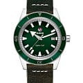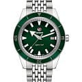 Премиальная модель привлекает винтажными деталями, оригинальным элементом стали стрелки в виде меча и стрелы. Зелёный безельБезельВнешний ободок, закрепляющий стекло. В спортивных часах так называется поворотное кольцо с делениями на циферблате, выполняет роль таймера – замеряет отрезки времени на шкале. Неподвижный безель – элемент декора. Однонаправленно вращающийся безель на дайверских часах позволяет фиксировать моменты погружения и выныривания на поверхность. изготовлен из высокотехнологичной керамикиВысокотехнологичная керамикаИнновационный запатентованный Rado материал с гладкой или матовой поверхностью. Керамика за счёт кристаллической структуры обладает повышенной устойчивостью от возникновения царапин. Материал способен принимать температуру тела человека, обеспечивая невероятный комфорт при ношении., устойчивой к возникновению царапин. Аксессуар выполнен в спортивном стиле, но сдержанная цветовая гамма и лаконичный облик позволяет ему удачно гармонировать с деловой одеждой. Наручные часы работают от автоматического швейцарского механизма ETA C07.611, сохраняющего запас хода до 80 часов. В комплектацию входит дорожный кожаный кейс и набор сменных ремешков: тканевый, стальной, кожаный. Система Rado EasyClip позволяет легко и быстро менять ремешок без использования профессиональных инструментов. Сапфировое стекло имеет антибликовую обработку. Завинчивающаяся заводная головка и задняя крышка усиливают водостойкость до 200 метров. Для стрелок используется люминесцентное покрытиеЛюминесцентное покрытиеПозволяет считывать показания времени в темноте. Производители наносят на стрелки, часовые индексы, безель или поверхность циферблата светонакопительный состав, дающий холодное свечение.. Отображение числа на метке 3 часов. Диаметр корпуса: 42 мм.