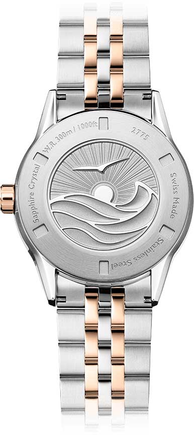 Браслет из нержавеющей стали с PVD-покрытиемPVDУльтратонкое покрытие наносится в технике вакуумного напыления, сочетает в себе нитрид титана особой прочности со слоем золота или оксида хрома. Несёт в себе декоративную или защитную функцию. на раскладной застёжкеРаскладная застёжкаТакой тип застёжки используется только на браслетах из металла. Она никогда не раскрывается полностью, происходит разделение на 2 и более частей. Раскладывающая застёжка снизит вероятность потери часов к минимуму. с двойной системой защиты, обеспечивает надёжную фиксацию и комфортное ношение. Водозащита до 30 ATM делает часы подходящими для плавания и других активностей, связанных с водой.