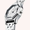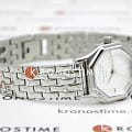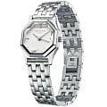 Женские кварцевые часы. Центральные часовая, минутная и секундная стрелки. Белый циферблат. Восьмиугольный корпус выполнен из полированной нержавеющей стали. Размер корпуса составляет 21,5 х 27,5 мм. Стальной браслет c ювелирной застежкой. Прочное минеральное стеклоМинеральное стеклоМинеральное стекло представляет собой искусственно выращенный минерал кварца. Такое стекло отличается особой устойчивостью к повреждениям и царапинам. Уступает по некоторым качествам сапфировому стеклу. устойчивое к мелким механическим повреждениям. Водостойкость WR 30 (брызги).