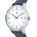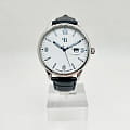 Стальной корпус круглой формы диаметром 42 мм и толщиной 10.1 мм выполнен из нержавеющей стали, что придает часам прочность и долговечность. Циферблат белого цвета надежно защищен закаленным минеральным стекломМинеральное стеклоМинеральное стекло представляет собой искусственно выращенный минерал кварца. Такое стекло отличается особой устойчивостью к повреждениям и царапинам. Уступает по некоторым качествам сапфировому стеклу., что предотвращает появление царапин и повреждений.