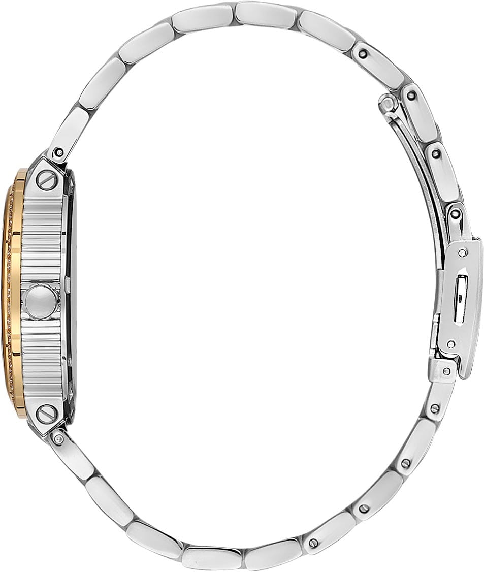 Женские кварцевые часы Santa Barbara Polo & Racquet Club Unique SB.1.10553-3 — это стильный аксессуар, подчеркивающий индивидуальность. Изысканный корпус диаметром 34 мм выполнен из нержавеющей стали 316L с безелемБезельВнешний ободок, закрепляющий стекло. В спортивных часах так называется поворотное кольцо с делениями на циферблате, выполняет роль таймера – замеряет отрезки времени на шкале. Неподвижный безель – элемент декора. Однонаправленно вращающийся безель на дайверских часах позволяет фиксировать моменты погружения и выныривания на поверхность. с IP-покрытиемIP-покрытиеМетод ионного напыления. Демонстрирует повышенную устойчивость к истиранию, окислению и химическим веществам. Под воздействием высокого давления и температуры около 1500°C молекулы металла надёжно соединяются с частицами корпуса часов. и украшенным кристаллами. Изящный циферблат дополнен крупными римскими индексами, а также фирменным логотипом. Стрелки в стиле Breguet с люминесцентным покрытиемЛюминесцентное покрытиеПозволяет считывать показания времени в темноте. Производители наносят на стрелки, часовые индексы, безель или поверхность циферблата светонакопительный состав, дающий холодное свечение., обеспечивающим хорошую читаемость в темноте. Защиту циферблата обеспечивает минеральное стеклоМинеральное стеклоМинеральное стекло представляет собой искусственно выращенный минерал кварца. Такое стекло отличается особой устойчивостью к повреждениям и царапинам. Уступает по некоторым качествам сапфировому стеклу., устойчивое к мелким механическим повреждениям. Часы оснащены надежным стальным браслетом с частичным IP-покрытиемIP-покрытиеМетод ионного напыления. Демонстрирует повышенную устойчивость к истиранию, окислению и химическим веществам. Под воздействием высокого давления и температуры около 1500°C молекулы металла надёжно соединяются с частицами корпуса часов. с раскладной застёжкойРаскладная застёжкаТакой тип застёжки используется только на браслетах из металла. Она никогда не раскрывается полностью, происходит разделение на 2 и более частей. Раскладывающая застёжка снизит вероятность потери часов к минимуму.. Водонепроницаемость 50 м позволяет использовать часы в повседневных условиях. Идеальный выбор для тех, кто ценит элегантный дизайн и качество.