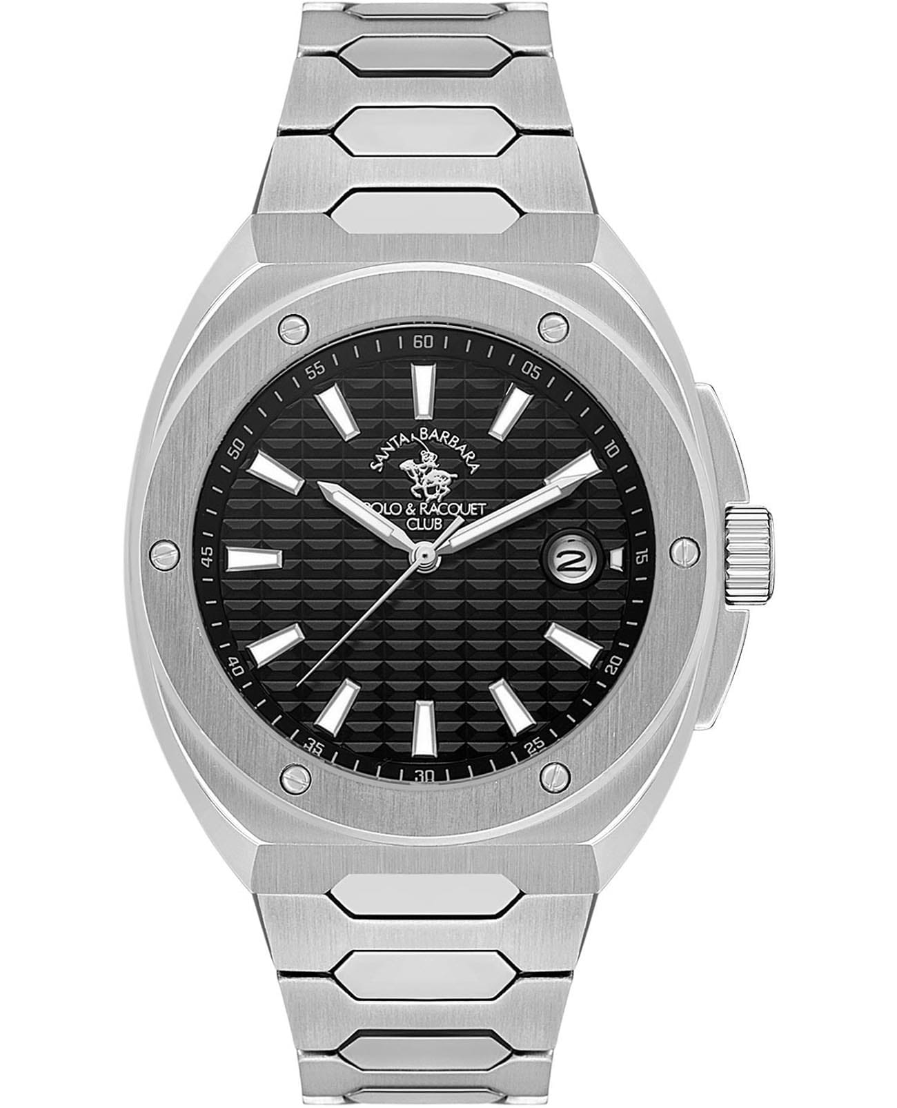Мужские кварцевые Santa Barbara Polo & Racquet Club Legend  SB.1.10557-1 — воплощение элегантности и технического совершенства. Корпус из стали 316L серебристого цвета, диаметром 41.5 мм, что делает их устойчивыми к внешним воздействиям и придает благородный вид. Стрелки и метки с люминесцентным покрытиемЛюминесцентное покрытиеПозволяет считывать показания времени в темноте. Производители наносят на стрелки, часовые индексы, безель или поверхность циферблата светонакопительный состав, дающий холодное свечение., обеспечивающим хорошую читаемость в темноте. Циферблат защищён минеральным стекломМинеральное стеклоМинеральное стекло представляет собой искусственно выращенный минерал кварца. Такое стекло отличается особой устойчивостью к повреждениям и царапинам. Уступает по некоторым качествам сапфировому стеклу., устойчивое к царапинам и механическим повреждениям. Окошко даты находится в положении 3 часа. Браслет из стали с застёжкой «бабочка»Застёжка "бабочка"Такой вид застёжки дополняется предохранителями, помогающими избежать случайного раскрытия браслета. Обладают изящным исполнением. , обеспечивающим комфортное и безопасное ношение. Водонепроницаемость 50 метров позволит защитить корпус от случайных брызг или капель дождя. Идеальный выбор для тех, кто ценит элегантный дизайн и качество.