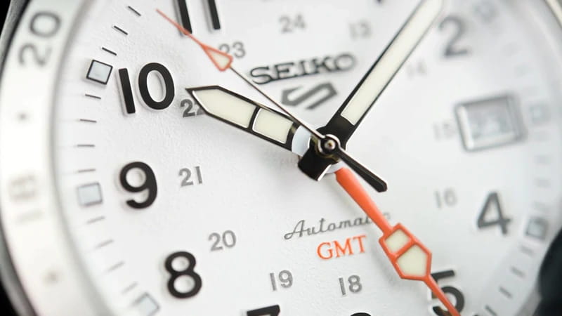 Мужские механические часы с автоподзаводом Seiko из коллекции 5 Sports — это надёжный и функциональный аксессуар. Корпус диаметром 39 мм и толщиной 13,6 мм выполнен из нержавеющей стали. Циферблат белого цвета оформлен арабскими цифрами и стрелками. Окошко даты расположено в положении 3 часов. Присутствует центральная стрелка второго часового пояса (GMT) в 24-часовом формате. Стрелки и метки с люминесцентным покрытиемЛюминесцентное покрытиеПозволяет считывать показания времени в темноте. Производители наносят на стрелки, часовые индексы, безель или поверхность циферблата светонакопительный состав, дающий холодное свечение., обеспечивающим хорошую читаемость в темноте. Циферблат защищён прочным закалённым минеральным стекломМинеральное стеклоМинеральное стекло представляет собой искусственно выращенный минерал кварца. Такое стекло отличается особой устойчивостью к повреждениям и царапинам. Уступает по некоторым качествам сапфировому стеклу. Hardlex. Механизм — автоматический калибр 4R34 (24 камня, частота 21 600 полуколебаний в час) с запасом хода до 41 часа. Часы оснащены стальным браслетом на раскладной застёжкеРаскладная застёжкаТакой тип застёжки используется только на браслетах из металла. Она никогда не раскрывается полностью, происходит разделение на 2 и более частей. Раскладывающая застёжка снизит вероятность потери часов к минимуму. с фиксатором. Водонепроницаемость 100 м позволяет использовать часы для плавания и повседневного ношения. Идеальный выбор для тех, кто ценит японское качество и универсальный дизайн.