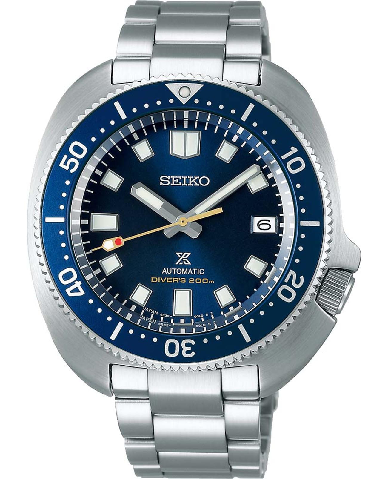 Мужские механические часы с автоподзаводом Seiko — это спортивный аксессуар из коллекции Prospex, выпущенный ограниченной серией в честь 55-летия легендарных дайверских часов Seiko — всего 5500 экземпляров. Корпус диаметром 42 мм и толщиной 13 мм выполнен из стали с частичным PVD-покрытиемPVDУльтратонкое покрытие наносится в технике вакуумного напыления, сочетает в себе нитрид титана особой прочности со слоем золота или оксида хрома. Несёт в себе декоративную или защитную функцию.. Циферблат синего цвета оформлен штрихами и логотипом бренда. Окошко даты расположено в положении 3 часов. Стрелки и метки с люминесцентным покрытиемЛюминесцентное покрытиеПозволяет считывать показания времени в темноте. Производители наносят на стрелки, часовые индексы, безель или поверхность циферблата светонакопительный состав, дающий холодное свечение. LumiBrite, обеспечивающим высокую читаемость в темноте. Циферблат защищён изогнутым сапфировым стекломСапфировое стеклоПрочный и надёжный материал из кристалла сапфира синтетического происхождения, характеризующийся особой твёрдостью и устойчивостью к царапинам и повреждениям. с антибликовым покрытиемАнтибликовое покрытиеСлой оксида металла в 0,13-0,3 микрон, благодаря которому стекло часов не бликует и не отражает свет. Антибликовое покрытие уменьшает отражение света в 10 раз, обеспечивая отличную читаемость показателей циферблата. на внутренней поверхности. Механизм — автоматический калибр 6R35 (24 камня, частота 21 600 полуколебаний в час) с возможностью ручного завода и функцией , запас хода до 70 часов. БезельБезельВнешний ободок, закрепляющий стекло. В спортивных часах так называется поворотное кольцо с делениями на циферблате, выполняет роль таймера – замеряет отрезки времени на шкале. Неподвижный безель – элемент декора. Однонаправленно вращающийся безель на дайверских часах позволяет фиксировать моменты погружения и выныривания на поверхность. — однонаправленный, вращающийся. Завинчивающаяся задняя крышка и заводная головка с защитой на позиции 4 часов повышают надёжность. Часы оснащены стальным браслетом с раскладной застёжкойРаскладная застёжкаТакой тип застёжки используется только на браслетах из металла. Она никогда не раскрывается полностью, происходит разделение на 2 и более частей. Раскладывающая застёжка снизит вероятность потери часов к минимуму. с системой блокировки. В комплекте — сменный силиконовый ремешок. Водонепроницаемость 200 м позволяет использовать часы для профессионального плавания и дайвинга. Идеальный выбор для тех, кто ценит историю, точность и мощный дизайн.