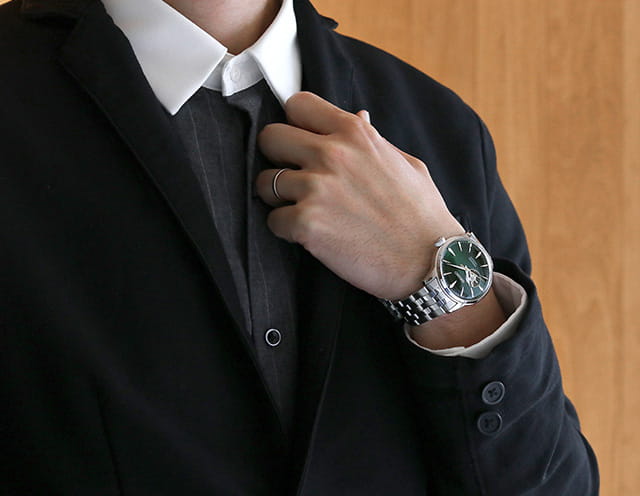 Мужские наручные часы Seiko SSA441J1 из коллекции Presage Cocktail Time сочетают в себе классический дизайн и надежность современных технологий. Модель обладает круглым корпусом диаметром 40,5 мм, изготовленным из нержавеющей стали, что обеспечивает высокую устойчивость к внешним воздействиям . Толщина корпуса составляет 11,8 мм, а для защиты используется минеральное стеклоМинеральное стеклоМинеральное стекло представляет собой искусственно выращенный минерал кварца. Такое стекло отличается особой устойчивостью к повреждениям и царапинам. Уступает по некоторым качествам сапфировому стеклу. Hardlex Crystal, обеспечивающее прочную защиту от царапин . Браслет также выполнен из нержавеющей стали с раскладной застежкойРаскладная застёжкаТакой тип застёжки используется только на браслетах из металла. Она никогда не раскрывается полностью, происходит разделение на 2 и более частей. Раскладывающая застёжка снизит вероятность потери часов к минимуму., гарантирующей комфортное ношение . Циферблат зеленого цвета украшен текстурой, которая подчеркивает элегантный стиль модели. асы работают на автоматическом механизме с калибром 4R38, который включает 23 камня и обладает запасом хода до 41 часа. Водонепроницаемость составляет WR 50, что позволяет защитить корпус от случайных брызг и кратковременного контакта с водой . Вдохновленные культурой японских коктейлей, эти часы демонстрируют уникальный стиль и внимание к деталям.