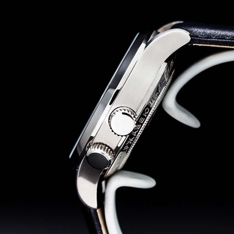 Мужские механические часы с автоподзаводом — это надёжный спутник в любых путешествиях. Корпус диаметром 42 мм выполнен из стали. Циферблат чёрного цвета оформлен индексами и стрелками. Присутствуют функции мирового времени (UTCМировое время Полезное часовое усложнение, отображающее время в основных городах и известных областях по всему миру, оно связано с часовыми поясами, удобно для путешественников и бизнесменов. ), 24-часового формата отображения времени и вращающийся внутренний безельБезельВнешний ободок, закрепляющий стекло. В спортивных часах так называется поворотное кольцо с делениями на циферблате, выполняет роль таймера – замеряет отрезки времени на шкале. Неподвижный безель – элемент декора. Однонаправленно вращающийся безель на дайверских часах позволяет фиксировать моменты погружения и выныривания на поверхность. для удобного определения часовых поясов. Окошко даты расположено в положении 6 часов. Циферблат защищён минеральным стекломМинеральное стеклоМинеральное стекло представляет собой искусственно выращенный минерал кварца. Такое стекло отличается особой устойчивостью к повреждениям и царапинам. Уступает по некоторым качествам сапфировому стеклу.. Часы оснащены кожаным ремешком на классической пряжке. Водонепроницаемость 100 м позволяет использовать часы для плавания и повседневного ношения. Идеальный выбор для тех, кто ценит отечественное качество и универсальный дизайн.