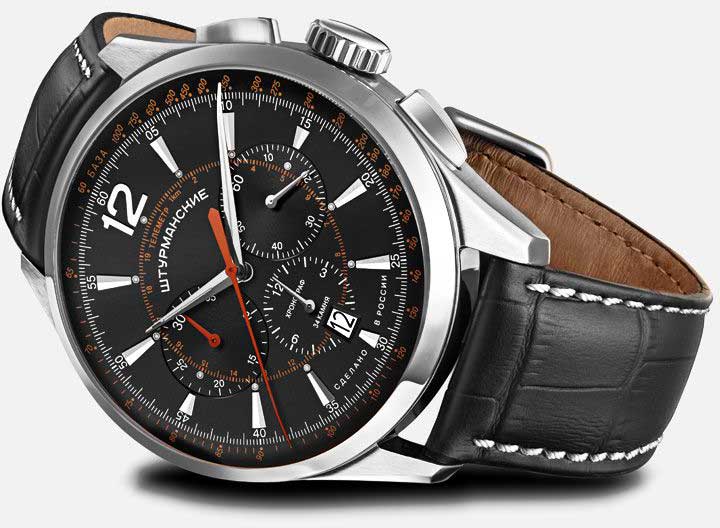 Лимитированные мужские российские механические часы-хронографХронографФункция позволяет измерять отрезки времени с особой точностью: часы, минуты, секунды. Верным признаком хронографа является наличие на циферблате 3 дополнительных окошек-счётчиков. с секундомеромСекундомерСекундоме́р — прибор, способный измерять интервалы времени с точностью до долей секунды. Штурманские Открытый Космос NE88/1855008, механический механизм (автоматический калибр) с высокой точностью. Лимитированная серия - 500 экземпляров, посвящена первому выходу человека в открытый космос. Индивидуальная нумерация. Сапфировое стеклоСапфировое стеклоПрочный и надёжный материал из кристалла сапфира синтетического происхождения, характеризующийся особой твёрдостью и устойчивостью к царапинам и повреждениям. устойчивое к появлению царапин, обладающее высокой прозрачностью. Класс водозащиты: 50 метров, позволит защитить корпус от случайных брызг или капель дождя. Корпус часов изготовлен из стали. Кожаный ремешок на стандартной застёжке. Стрелки и метки с люминесцентным покрытиемЛюминесцентное покрытиеПозволяет считывать показания времени в темноте. Производители наносят на стрелки, часовые индексы, безель или поверхность циферблата светонакопительный состав, дающий холодное свечение.. Стальной корпус надежно защищает от повреждений механический японский калибр Seiko NE88 на 34 камня с запасом хода 42 часа. Подзавод у часов автоматический.
