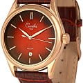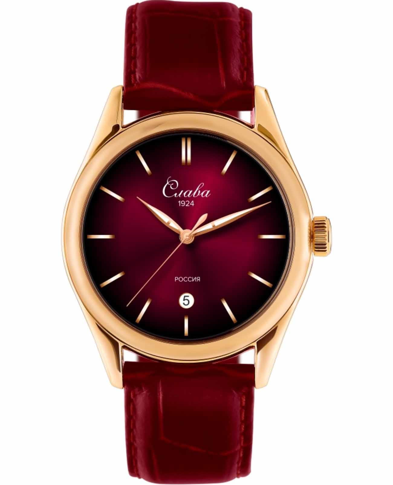 Российские наручные часы Слава Сенат 2493524/300-2115 станут отличным дополнением к вашему образу и идеальным выбором для тех, кто ценит стиль, комфорт и надежность. Эти часы оснащены японским кварцевым механизмом Miyota 2115, что гарантирует их точность и долговечность. Корпус часов диаметром 38 мм и толщиной 11 мм выполнен из прочной стали с золотистым IP-покрытиемIP-покрытиеМетод ионного напыления. Демонстрирует повышенную устойчивость к истиранию, окислению и химическим веществам. Под воздействием высокого давления и температуры около 1500°C молекулы металла надёжно соединяются с частицами корпуса часов., а красный циферблат с эффектом "солнечные лучи" изящными метками защищен сапфировым стекломСапфировое стеклоПрочный и надёжный материал из кристалла сапфира синтетического происхождения, характеризующийся особой твёрдостью и устойчивостью к царапинам и повреждениям., устойчивым к царапинам. Окошко календаря, расположенное в положении 6 часов, добавляет функциональности и удобства в повседневном использовании. Стрелки с люминесцентным покрытиемЛюминесцентное покрытиеПозволяет считывать показания времени в темноте. Производители наносят на стрелки, часовые индексы, безель или поверхность циферблата светонакопительный состав, дающий холодное свечение., что облегчает чтение времени даже в условиях слабого освещения. Эти часы обладают водозащитой 50WR, что позволяет не переживать за их сохранность в условиях повышенной влажности. Завершает образ кожаный ремешок с классической застежкой, обеспечивающий комфортную посадку на запястье.