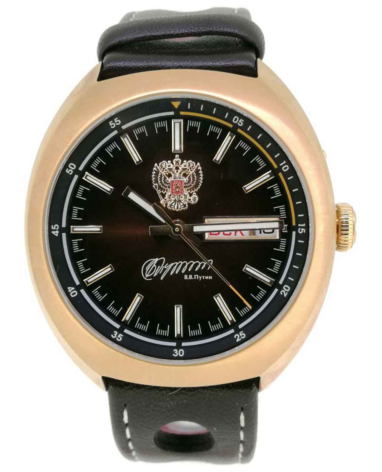 Российские механические часы Слава 5013147/300-2427, которые поддерживаются автоподзаводом, созданы для тех, кто ценит стиль и надежность. Корпус часов изготовлен из стали с IP-покрытиемIP-покрытиеМетод ионного напыления. Демонстрирует повышенную устойчивость к истиранию, окислению и химическим веществам. Под воздействием высокого давления и температуры около 1500°C молекулы металла надёжно соединяются с частицами корпуса часов., что придает им дополнительную стойкость и элегантный вид. Коричневый циферблат украшен гербом России и подписью Президента РФ, добавляя патриотичную нотку и эксклюзивность. Удобно расположенное окошко даты и дня недели в положении 3 часа делает эти часы еще более практичными. Стрелки и метки с люминесцентным покрытиемЛюминесцентное покрытиеПозволяет считывать показания времени в темноте. Производители наносят на стрелки, часовые индексы, безель или поверхность циферблата светонакопительный состав, дающий холодное свечение. облегчают чтение времени даже в условиях слабого освещения. Минеральное стеклоМинеральное стеклоМинеральное стекло представляет собой искусственно выращенный минерал кварца. Такое стекло отличается особой устойчивостью к повреждениям и царапинам. Уступает по некоторым качествам сапфировому стеклу. с сапфировым напылением защищает циферблат от царапин и повреждений, сохраняя идеальный внешний вид на протяжении долгого времени. Водозащита 100WR позволяет не беспокоиться о воздействии влаги в повседневной жизни. Часы комплектуются кожаным перфорированным ремешком, прошитым белой нитью и оснащенным классической застежкой, обеспечивая комфорт и надежность в носке.