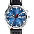 Российские наручные часы Слава Эра 9020579/300-2427 — элегантное сочетание традиций и современных технологий. Эти часы оснащены механическим механизмом с автоподзаводом и калибром Слава 2427, который обеспечивает точность и надежность. Корпус выполнен из нержавеющей стали, что придаёт часам прочность и долговечность, а синий циферблат с накладными метками добавляет изысканности. Стрелки и метки с люминесцентным покрытиемЛюминесцентное покрытиеПозволяет считывать показания времени в темноте. Производители наносят на стрелки, часовые индексы, безель или поверхность циферблата светонакопительный состав, дающий холодное свечение., что облегчает чтение времени даже в условиях слабого освещения. Часы оборудованы функцией календаря, отображающего дату и день недели, с удобным расположением в позиции 3 часа. Сапфировое стеклоСапфировое стеклоПрочный и надёжный материал из кристалла сапфира синтетического происхождения, характеризующийся особой твёрдостью и устойчивостью к царапинам и повреждениям., которое еще и граненое, защищает циферблат от царапин. Водозащита уровня 100WR позволяет использовать часы в различных условиях. Прозрачная задняя крышка позволяет наблюдать за работой механизма, а заводная головка с красной эмалью и фирменной буквой «С» добавляет уникальности. Перфорированный кожаный ремешок, прошитый белой нитью, и застежка «бабочка»Застёжка "бабочка"Такой вид застёжки дополняется предохранителями, помогающими избежать случайного раскрытия браслета. Обладают изящным исполнением. обеспечивают комфорт и стиль. Лимитированная серия ограничена 500 экземплярами, что подчеркивает их уникальность. Эти часы станут надежным спутником в вашей повседневной жизни.