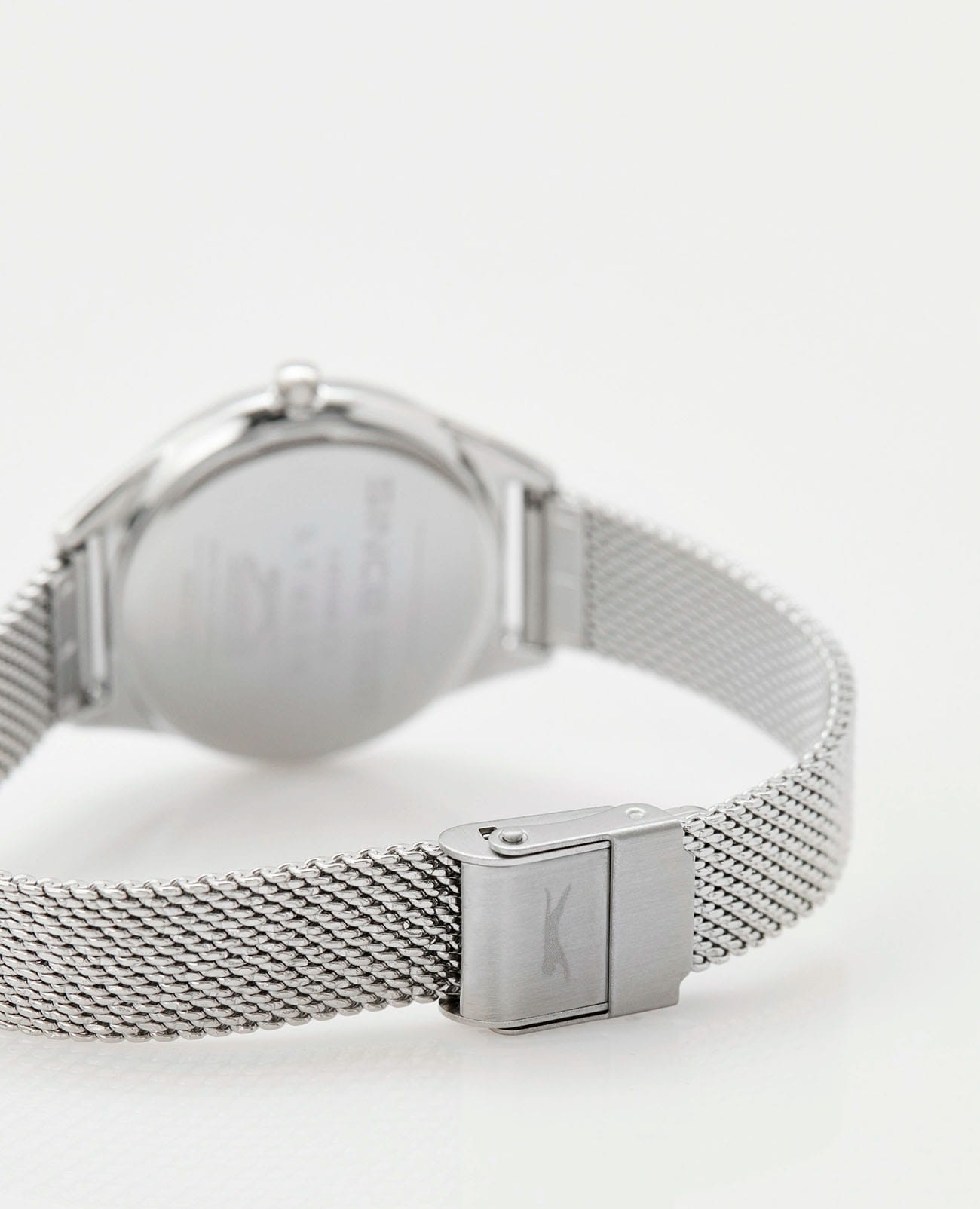 Женские наручные часы Slazenger SL.09.1852.3.06 сочетают в себе элегантный дизайн и надежность современных технологий. Модель обладает круглым корпусом диаметром 32 мм, изготовленным из суперметалла с серебряным покрытием, что обеспечивает высокую устойчивость к внешним воздействиям. Браслет миланского плетения на раскладном замкеРаскладной замокДанный вариант застежки используется только на часах с металлическим браслетом. Отличительная особенность такого крепления в том, что длина браслета становится универсальной и вы можете самостоятельно отрегулировать нужный вам размер – застежка просто двигается по браслету часов., гарантируюет комфортное ношение. Циферблат оснащен индексами для лучшей читаемости времени. Для защиты используется минеральное стеклоМинеральное стеклоМинеральное стекло представляет собой искусственно выращенный минерал кварца. Такое стекло отличается особой устойчивостью к повреждениям и царапинам. Уступает по некоторым качествам сапфировому стеклу., обеспечивающее прочную защиту от царапин. Часы работают на японском кварцевом механизме, что гарантирует точное время без необходимости подзаводки. Водонепроницаемость часов составляет 3 атмосферы (30 метров), что позволяет использовать их в повседневной жизни, но не рекомендуется для плавания или занятий водными видами спорта.