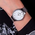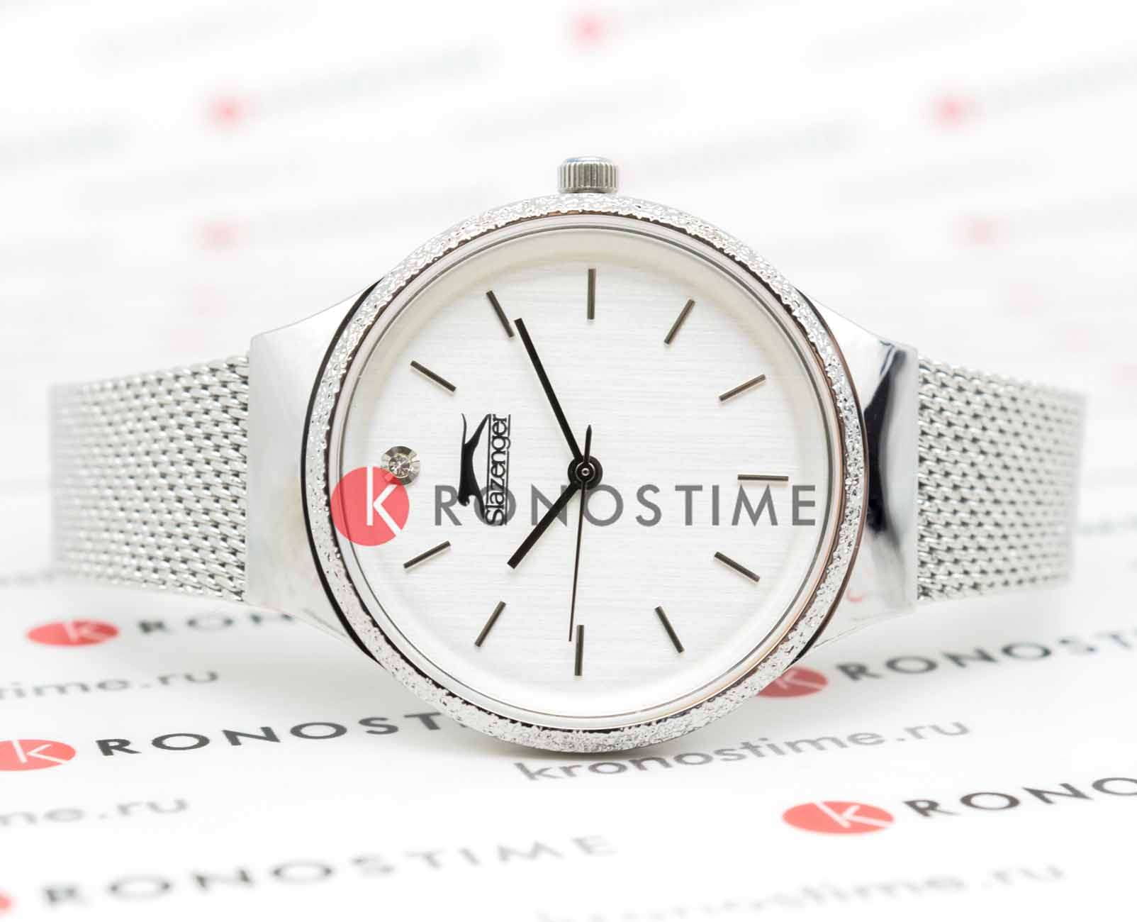 Женские наручные часы Slazenger SL.09.2015.3.01 сочетают в себе элегантный дизайн и практичность современных технологий. Модель обладает круглым корпусом диаметром 9 мм, изготовленным из суперметалла, что обеспечивает высокую устойчивость к внешним воздействиям. Браслет выполнен в технике миланского плетения из суперметалла на раскладном замкеРаскладной замокДанный вариант застежки используется только на часах с металлическим браслетом. Отличительная особенность такого крепления в том, что длина браслета становится универсальной и вы можете самостоятельно отрегулировать нужный вам размер – застежка просто двигается по браслету часов., гарантирующей комфортное ношение и безопасность. Циферблат белого цвета украшен фианитом, создавая благородный внешний вид. Для защиты используется минеральное стеклоМинеральное стеклоМинеральное стекло представляет собой искусственно выращенный минерал кварца. Такое стекло отличается особой устойчивостью к повреждениям и царапинам. Уступает по некоторым качествам сапфировому стеклу., обеспечивающее прочную защиту от царапин. Часы имеют уровень водозащиты до 5 атмосфер (50 метров), что позволяет использовать их при мытье рук и хождении под дождем, однако не рекомендуется для плавания или других водных видов спорта. Часы работают на японском кварцевом механизме, что гарантирует точное время без необходимости подзаводки. Модель оснащена тремя стрелками и не имеет функции отображения даты, делая ее идеальной для повседневного использования. Вес часов составляет 58 грамм, что делает их удобными для длительного ношения, а производитель предоставляет гарантию сроком 12 месяцев. SL.09.2015.3.01 — это стильный аксессуар, который отлично дополнит как классический, так и casual образ женщины.