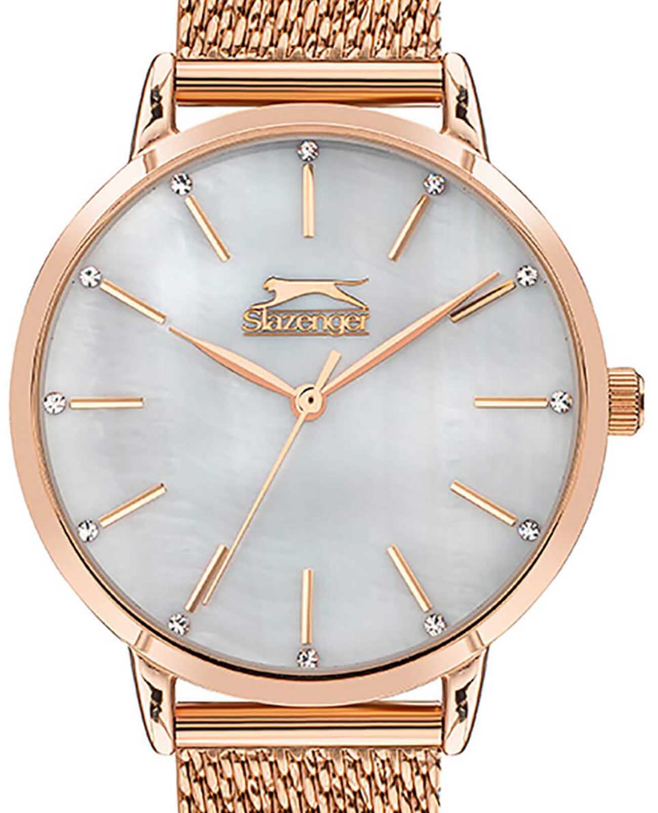 Slazenger SL.09.2047.3.05 – элегантные женские часы, сочетающие стильный дизайн и функциональность. Корпус диаметром 35 мм и толщиной 9 мм выполнен из суперметалла с PVD-покрытиемPVDУльтратонкое покрытие наносится в технике вакуумного напыления, сочетает в себе нитрид титана особой прочности со слоем золота или оксида хрома. Несёт в себе декоративную или защитную функцию., обеспечивающего прочность и долговечность. Циферблат защищён минеральным стекломМинеральное стеклоМинеральное стекло представляет собой искусственно выращенный минерал кварца. Такое стекло отличается особой устойчивостью к повреждениям и царапинам. Уступает по некоторым качествам сапфировому стеклу., устойчивым к царапинам и украшен фианитами. Часы оснащены точным кварцевым механизмом, обеспечивающим надёжное отображение времени. Браслет из суперметалла с PVD-покрытиемPVDУльтратонкое покрытие наносится в технике вакуумного напыления, сочетает в себе нитрид титана особой прочности со слоем золота или оксида хрома. Несёт в себе декоративную или защитную функцию. миланского плетения на раскладном замкеРаскладной замокДанный вариант застежки используется только на часах с металлическим браслетом. Отличительная особенность такого крепления в том, что длина браслета становится универсальной и вы можете самостоятельно отрегулировать нужный вам размер – застежка просто двигается по браслету часов., обеспечивающей комфортное ношение и надёжную фиксацию на запястье. Водозащита до 30 метров (3 ATM) защищает часы от случайных брызг и дождя, делая их подходящими для повседневного использования.