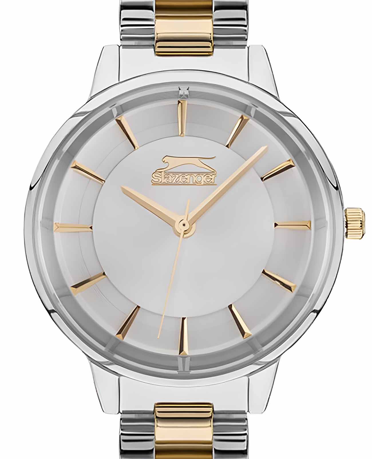 Часы Slazenger SL.09.2054.3.04 — это элегантное сочетание стиля и функциональности, созданное специально для женщин. Их изысканный серебристый циферблат и корпус из суперметалла придают часам современный и утонченный вид. Внутри скрыт надежный кварцевый механизм, который гарантирует точность и долговечность. Минеральное стеклоМинеральное стеклоМинеральное стекло представляет собой искусственно выращенный минерал кварца. Такое стекло отличается особой устойчивостью к повреждениям и царапинам. Уступает по некоторым качествам сапфировому стеклу. защищает часы от царапин. Браслет из суперметалла с частичным IP-покрытиемIP-покрытиеМетод ионного напыления. Демонстрирует повышенную устойчивость к истиранию, окислению и химическим веществам. Под воздействием высокого давления и температуры около 1500°C молекулы металла надёжно соединяются с частицами корпуса часов. и раскладной застёжкойРаскладная застёжкаТакой тип застёжки используется только на браслетах из металла. Она никогда не раскрывается полностью, происходит разделение на 2 и более частей. Раскладывающая застёжка снизит вероятность потери часов к минимуму. подчеркивает женственность дизайна и обеспечивает комфорт в носке. Диаметр корпуса составляет 35 мм, а толщина — 9 мм, что делает их идеальным аксессуаром для любой стильной женщины. Водозащита уровня 3 ATM позволяет не беспокоиться о случайных брызгах.
