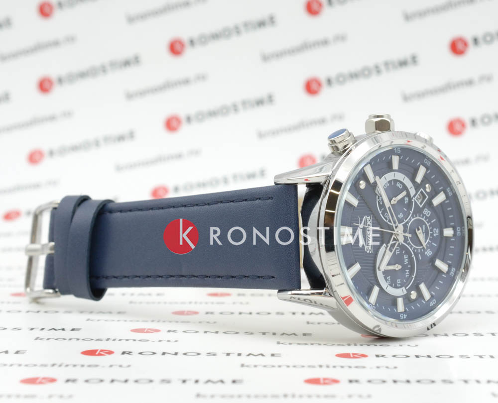 Мужские наручные часы Slazenger SL.09.2062.2.01 сочетают в себе классический дизайн и надежность современных технологий. Модель обладает круглым корпусом диаметром 45 мм, изготовленным из суперметалла, что обеспечивает высокую устойчивость к внешним воздействиям. Браслет выполнен из кожи с классической застежкой, гарантирующей комфортное ношение и безопасность. Циферблат темно-синего цвета декорирован стрелками с люминесцентным покрытиемЛюминесцентное покрытиеПозволяет считывать показания времени в темноте. Производители наносят на стрелки, часовые индексы, безель или поверхность циферблата светонакопительный состав, дающий холодное свечение., которые обеспечивают читаемость времени даже в условиях недостаточной освещенности. Для защиты используется минеральное стеклоМинеральное стеклоМинеральное стекло представляет собой искусственно выращенный минерал кварца. Такое стекло отличается особой устойчивостью к повреждениям и царапинам. Уступает по некоторым качествам сапфировому стеклу., обеспечивающее прочную защиту от царапин. Часы работают на кварцевом механизме, что гарантирует точное время без необходимости подзаводки. Модель также оснащена функциями отображения второго часового пояса, дня недели и текущего времени в 24-часовом формате на малых циферблатах, делая её практичной для повседневного использования и путешествий. Водонепроницаемость часов достигает 5 атмосфер (WR50), что позволяет использовать их во время плавания, однако не рекомендуется для дайвинга или других водных видов спорта. Производитель предоставляет гарантию сроком 12 месяцев.