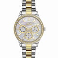 Женские наручные часы Slazenger SLSL.09.2069.4.03 сочетают в себе классический дизайн и высокое качество исполнения. Модель обладает круглым корпусом диаметром 34 мм, изготовленным из суперметалла, что обеспечивает устойчивость к внешним воздействиям. Браслет выполнен из суперметалла с частичным IP-покрытиемIP-покрытиеМетод ионного напыления. Демонстрирует повышенную устойчивость к истиранию, окислению и химическим веществам. Под воздействием высокого давления и температуры около 1500°C молекулы металла надёжно соединяются с частицами корпуса часов. на раскладной застёжкеРаскладная застёжкаТакой тип застёжки используется только на браслетах из металла. Она никогда не раскрывается полностью, происходит разделение на 2 и более частей. Раскладывающая застёжка снизит вероятность потери часов к минимуму.. Неподвижный безельБезельВнешний ободок, закрепляющий стекло. В спортивных часах так называется поворотное кольцо с делениями на циферблате, выполняет роль таймера – замеряет отрезки времени на шкале. Неподвижный безель – элемент декора. Однонаправленно вращающийся безель на дайверских часах позволяет фиксировать моменты погружения и выныривания на поверхность. из суперметалла с IP-покрытиемIP-покрытиеМетод ионного напыления. Демонстрирует повышенную устойчивость к истиранию, окислению и химическим веществам. Под воздействием высокого давления и температуры около 1500°C молекулы металла надёжно соединяются с частицами корпуса часов. украшен кристаллами. Перламутровый циферблат оформлен логотипом бренда и метками времени. Имеются дополнительные малые циферблаты для отображения даты, дня недели и текущего времени в 24-часовом формате. Для защиты используется минеральное стеклоМинеральное стеклоМинеральное стекло представляет собой искусственно выращенный минерал кварца. Такое стекло отличается особой устойчивостью к повреждениям и царапинам. Уступает по некоторым качествам сапфировому стеклу., обеспечивающее прочную защиту от царапин. Стрелки и метки имеют люминесцентное покрытиеЛюминесцентное покрытиеПозволяет считывать показания времени в темноте. Производители наносят на стрелки, часовые индексы, безель или поверхность циферблата светонакопительный состав, дающий холодное свечение., что позволяет легко читать время в темноте. Часы работают на японском кварцевом механизме, который обеспечивает точность хода без необходимости подзаводки. Водонепроницаемость часов составляет 3 атмосферы (WR30), что позволяет защитить корпус от случайных брызг или капель дождя.