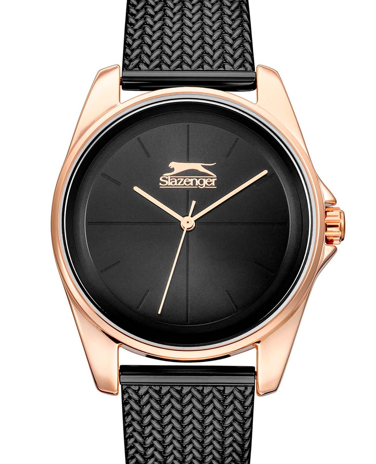 Женские наручные часы Slazenger SL.09.2074.3.02 представляют собой стильное сочетание классики и инноваций. Модель имеет круглый корпус диаметром 37 мм, выполненный из суперметалла с IP-покрытиемIP-покрытиеМетод ионного напыления. Демонстрирует повышенную устойчивость к истиранию, окислению и химическим веществам. Под воздействием высокого давления и температуры около 1500°C молекулы металла надёжно соединяются с частицами корпуса часов. розового золота, что придает изделию привлекательный внешний вид и высокую устойчивость к внешним воздействиям. Браслет также выполнен с IP-покрытиемIP-покрытиеМетод ионного напыления. Демонстрирует повышенную устойчивость к истиранию, окислению и химическим веществам. Под воздействием высокого давления и температуры около 1500°C молекулы металла надёжно соединяются с частицами корпуса часов. черного цвета на раскладном замкеРаскладной замокДанный вариант застежки используется только на часах с металлическим браслетом. Отличительная особенность такого крепления в том, что длина браслета становится универсальной и вы можете самостоятельно отрегулировать нужный вам размер – застежка просто двигается по браслету часов., обеспечивающий комфортное ношение и надежную фиксацию на запястье. Защита обеспечивается прочным минеральным стекломМинеральное стеклоМинеральное стекло представляет собой искусственно выращенный минерал кварца. Такое стекло отличается особой устойчивостью к повреждениям и царапинам. Уступает по некоторым качествам сапфировому стеклу., устойчивым к царапинам. Часы оснащены точным кварцевым механизмом и имеют водонепроницаемость до 3 атмосфер (WR30), что позволяет использовать их при легком контакте с водой, например, во время мытья рук или хождения под мелким дождем.