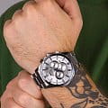 Мужские наручные часы-хронографХронографФункция позволяет измерять отрезки времени с особой точностью: часы, минуты, секунды. Верным признаком хронографа является наличие на циферблате 3 дополнительных окошек-счётчиков. Slazenger SL.09.2078.2.02 из коллекции современных аксессуаров сочетают в себе классический дизайн и функциональность. Модель обладает круглым корпусом, изготовленным из суперметалла, что обеспечивает высокую устойчивость к внешним воздействиям. Браслет выполнен из суперметалла с раскладной застежкойРаскладной замокДанный вариант застежки используется только на часах с металлическим браслетом. Отличительная особенность такого крепления в том, что длина браслета становится универсальной и вы можете самостоятельно отрегулировать нужный вам размер – застежка просто двигается по браслету часов., гарантирующей комфортное ношение и безопасность. Циферблат оснащен указателем текущего времени и системой для измерения коротких промежутков времени, делая модель подходящей для тех, кто ведет активный образ жизни. Для защиты используется минеральное стеклоМинеральное стеклоМинеральное стекло представляет собой искусственно выращенный минерал кварца. Такое стекло отличается особой устойчивостью к повреждениям и царапинам. Уступает по некоторым качествам сапфировому стеклу., обеспечивающее прочную защиту от царапин. БезельБезельВнешний ободок, закрепляющий стекло. В спортивных часах так называется поворотное кольцо с делениями на циферблате, выполняет роль таймера – замеряет отрезки времени на шкале. Неподвижный безель – элемент декора. Однонаправленно вращающийся безель на дайверских часах позволяет фиксировать моменты погружения и выныривания на поверхность. с IP-покрытиемIP-покрытиеМетод ионного напыления. Демонстрирует повышенную устойчивость к истиранию, окислению и химическим веществам. Под воздействием высокого давления и температуры около 1500°C молекулы металла надёжно соединяются с частицами корпуса часов.. Часы работают на кварцевом механизме, что гарантирует точное время без необходимости подзаводки. Стрелки с люминесцентным покрытиемЛюминесцентное покрытиеПозволяет считывать показания времени в темноте. Производители наносят на стрелки, часовые индексы, безель или поверхность циферблата светонакопительный состав, дающий холодное свечение.. Водонепроницаемость часов достигает 50 метров (5 атмосфер), что позволяет использовать их при легком контакте с водой, например, во время мытья рук, но не рекомендуется для плавания или дайвинга. Часы также имеют 24-часовой указатель времени и рассчитаны на использование мужчинами.