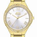Женские часы Slazenger SL.09.2141.3.04 - это изысканный аксессуар, сочетающий в себе элегантность и функциональность. Модель оснащена надежным кварцевым механизмом и обладает водозащитой 3 АТМ, что позволяет не беспокоиться о случайных брызгах. Корпус часов диаметром 35 мм и толщиной 9 мм выполнен из прочного суперметалла с IP-покрытиемIP-покрытиеМетод ионного напыления. Демонстрирует повышенную устойчивость к истиранию, окислению и химическим веществам. Под воздействием высокого давления и температуры около 1500°C молекулы металла надёжно соединяются с частицами корпуса часов., а циферблат защищен минеральным стекломМинеральное стеклоМинеральное стекло представляет собой искусственно выращенный минерал кварца. Такое стекло отличается особой устойчивостью к повреждениям и царапинам. Уступает по некоторым качествам сапфировому стеклу.. БезельБезельВнешний ободок, закрепляющий стекло. В спортивных часах так называется поворотное кольцо с делениями на циферблате, выполняет роль таймера – замеряет отрезки времени на шкале. Неподвижный безель – элемент декора. Однонаправленно вращающийся безель на дайверских часах позволяет фиксировать моменты погружения и выныривания на поверхность. инкрустирован фианитами.  Браслет, также изготовленный из суперметалла с IP-покрытиемIP-покрытиеМетод ионного напыления. Демонстрирует повышенную устойчивость к истиранию, окислению и химическим веществам. Под воздействием высокого давления и температуры около 1500°C молекулы металла надёжно соединяются с частицами корпуса часов., имеет раскладную застёжкуРаскладная застёжкаТакой тип застёжки используется только на браслетах из металла. Она никогда не раскрывается полностью, происходит разделение на 2 и более частей. Раскладывающая застёжка снизит вероятность потери часов к минимуму., что подчеркивает современный стиль и позволяет легко снимать часы. Особую привлекательность часам придают декоративные элементы в виде фианитов. Весом всего 90 грамм, эти часы станут легким и стильным дополнением к любому образу.