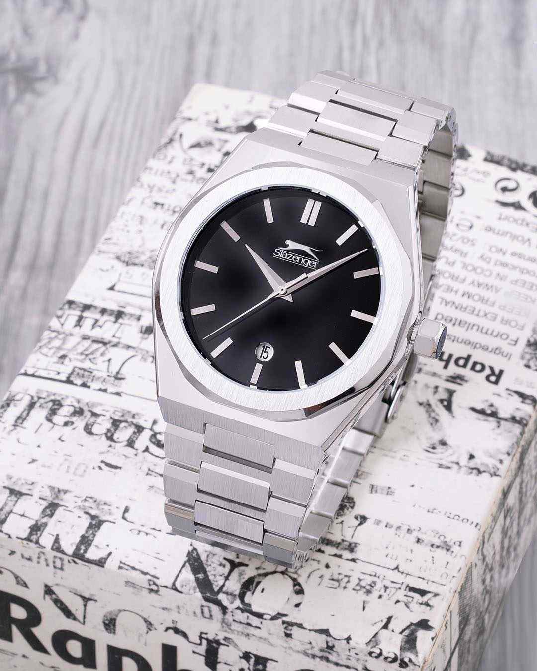 Мужские наручные часы Slazenger SL.09.2144.1.01 сочетают в себе классический дизайн и надежность современных технологий. Модель обладает круглым корпусом диаметром 44 мм, изготовленным из суперметалла, что обеспечивает высокую устойчивость к внешним воздействиям. Браслет выполнен из суперметалла с раскладной застёжкойРаскладная застёжкаТакой тип застёжки используется только на браслетах из металла. Она никогда не раскрывается полностью, происходит разделение на 2 и более частей. Раскладывающая застёжка снизит вероятность потери часов к минимуму., гарантирующей комфортное ношение и безопасность. Для защиты корпуса используется минеральное стеклоМинеральное стеклоМинеральное стекло представляет собой искусственно выращенный минерал кварца. Такое стекло отличается особой устойчивостью к повреждениям и царапинам. Уступает по некоторым качествам сапфировому стеклу., обеспечивающее прочную защиту от царапин. Часы работают на кварцевом механизме, что гарантирует точное время без необходимости подзаводки. Водонепроницаемость часов достигает 5 атмосфер (WR50), что позволяет использовать их во время плавания, однако они не предназначены для дайвинга или других водных видов спорта. Толщина модели составляет 11 мм. SL.09.2144.1.01 — это стильный аксессуар, который станет отличным дополнением как формального, так и casual образа мужчины.