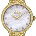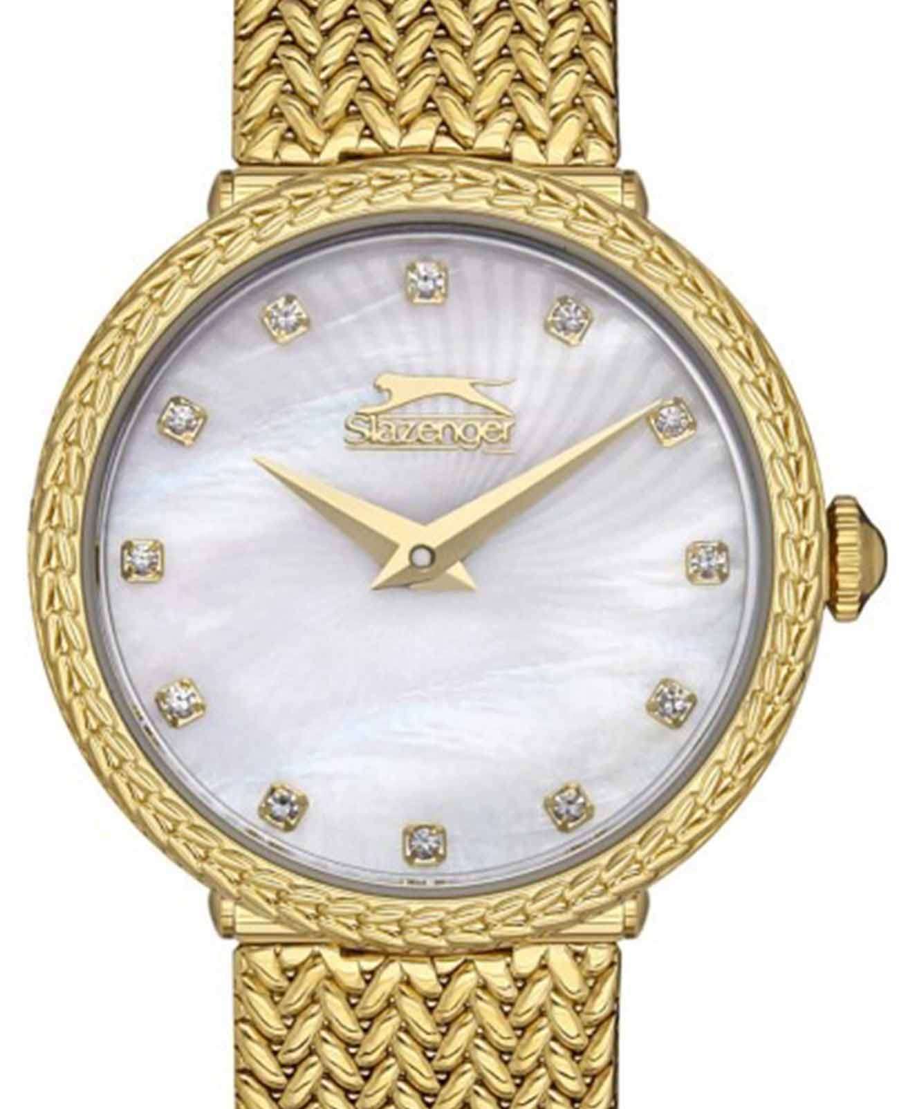 Элегантные женские часы Slazenger SL.09.2148.3.04 — это сочетание изысканного дизайна и надежной функциональности. Эти кварцевые часы подчеркнут ваш утонченный стиль. Корпус диаметром 28 мм выполнен из суперметалла с золотистым IP-покрытиемIP-покрытиеМетод ионного напыления. Демонстрирует повышенную устойчивость к истиранию, окислению и химическим веществам. Под воздействием высокого давления и температуры около 1500°C молекулы металла надёжно соединяются с частицами корпуса часов., что обеспечивает прочность и долговечность, а толщина корпуса всего 7 мм делает их изящными и аккуратными на запястье. Особое внимание привлекает перламутровый циферблат, украшенный сияющими кристаллами, которые добавляют нотку роскоши и блеска. Золотистый плетеный браслет с IP-покрытиемIP-покрытиеМетод ионного напыления. Демонстрирует повышенную устойчивость к истиранию, окислению и химическим веществам. Под воздействием высокого давления и температуры около 1500°C молекулы металла надёжно соединяются с частицами корпуса часов. шириной 14 мм гармонично дополняет общий облик и обеспечивает комфорт при носке, а раскладной замокРаскладной замокДанный вариант застежки используется только на часах с металлическим браслетом. Отличительная особенность такого крепления в том, что длина браслета становится универсальной и вы можете самостоятельно отрегулировать нужный вам размер – застежка просто двигается по браслету часов. обеспечивает комфортное ношение и надежную фиксацию на запястье. Часы весят всего 41 грамм, что делает их практически невесомыми на руке. Минеральное стеклоМинеральное стеклоМинеральное стекло представляет собой искусственно выращенный минерал кварца. Такое стекло отличается особой устойчивостью к повреждениям и царапинам. Уступает по некоторым качествам сапфировому стеклу. защищает циферблат от возможных повреждений, а водозащита уровня WR 30 позволяет использовать часы при случайных контактах с водой, например, при дожде или мытье рук. Эти часы станут идеальным выбором для женщин, которые ценят стиль и качество, и хотят подчеркнуть свою индивидуальность с помощью утонченных аксессуаров.