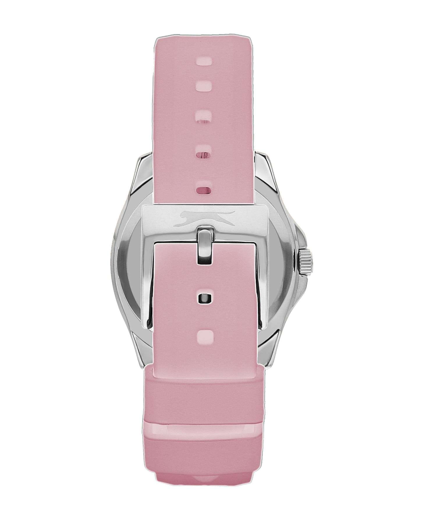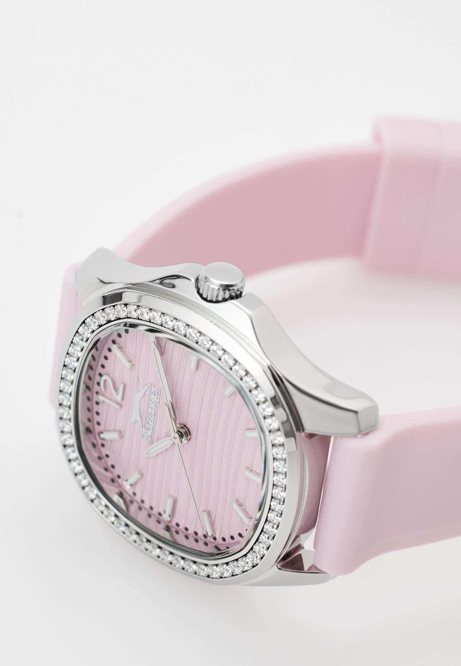 Часы Slazenger SL.09.2239.3.07 – это изысканный аксессуар, который станет стильным акцентом любого образа. Модель оснащена надежным кварцевым механизмом. Корпус из прочного металла размером 34х34 мм украшен россыпью сверкающих фианитов по безелюБезельВнешний ободок, закрепляющий стекло. В спортивных часах так называется поворотное кольцо с делениями на циферблате, выполняет роль таймера – замеряет отрезки времени на шкале. Неподвижный безель – элемент декора. Однонаправленно вращающийся безель на дайверских часах позволяет фиксировать моменты погружения и выныривания на поверхность., что придает часам особое сияние и элегантность. Розовый циферблат с логотипом бренда защищен стойким к царапинам минеральным стекломМинеральное стеклоМинеральное стекло представляет собой искусственно выращенный минерал кварца. Такое стекло отличается особой устойчивостью к повреждениям и царапинам. Уступает по некоторым качествам сапфировому стеклу.. Четкие часовые метки в виде лаконичных штрихов и крупная арабская цифра 12 обеспечивают удобство чтения времени. Заводная головка с рифлением дополнена защитой для повышения долговечности. Резиновый нежно-розовый ремешок шириной 18 мм надежно фиксируется на запястье с помощью классической застежки. Для удобства использования в темное время суток предусмотрено люминесцентное покрытиеЛюминесцентное покрытиеПозволяет считывать показания времени в темноте. Производители наносят на стрелки, часовые индексы, безель или поверхность циферблата светонакопительный состав, дающий холодное свечение. стрелок. Водозащита 30WR позволяет не беспокоиться о случайных брызгах. Вес изделия составляет 43 грамма, что делает часы комфортными для ежедневного ношения. Эти часы идеально подойдут для тех, кто ценит гармонию стиля, качества и функциональности.