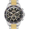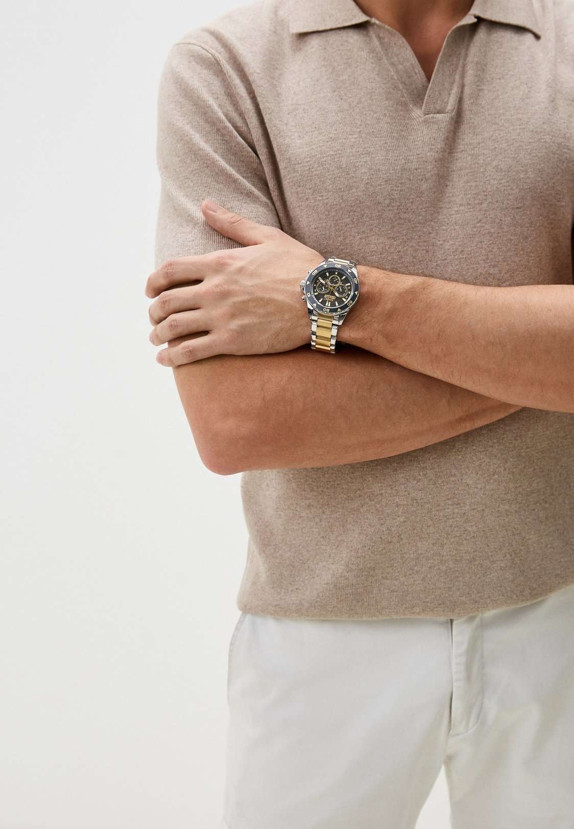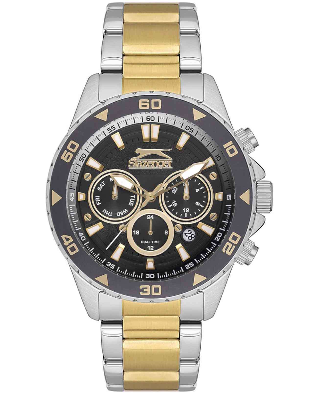 Часы Slazenger SL.09.2250.2.05 — это стильная и практичная модель, выполненная в элегантном серебристом цвете. Корпус изготовлен из металла, а на металлический браслет нанесено частичное золотистое IP-покрытиеIP-покрытиеМетод ионного напыления. Демонстрирует повышенную устойчивость к истиранию, окислению и химическим веществам. Под воздействием высокого давления и температуры около 1500°C молекулы металла надёжно соединяются с частицами корпуса часов., что обеспечивает прочность и долговечность. На безельБезельВнешний ободок, закрепляющий стекло. В спортивных часах так называется поворотное кольцо с делениями на циферблате, выполняет роль таймера – замеряет отрезки времени на шкале. Неподвижный безель – элемент декора. Однонаправленно вращающийся безель на дайверских часах позволяет фиксировать моменты погружения и выныривания на поверхность. нанесено черное IP-покрытиеIP-покрытиеМетод ионного напыления. Демонстрирует повышенную устойчивость к истиранию, окислению и химическим веществам. Под воздействием высокого давления и температуры около 1500°C молекулы металла надёжно соединяются с частицами корпуса часов.. Минеральное стеклоМинеральное стеклоМинеральное стекло представляет собой искусственно выращенный минерал кварца. Такое стекло отличается особой устойчивостью к повреждениям и царапинам. Уступает по некоторым качествам сапфировому стеклу. надежно защищает синий циферблат от царапин и повреждений. Диаметр корпуса составляет 44 мм, а толщина — 11 мм, благодаря чему часы смотрятся солидно и современно. Модель оснащена кварцевым механизмом, отличающимся точностью и надежностью. На циферблате представлены дополнительные малые циферблаты для отображения второго часового поясаВторой часовой поясФункция, позволяющая отображать время двух часовых поясов одновременно., дня недели и времени в 24-часовом формате, а также имеется отдельное окошко даты. Для удобства использования в темное время суток предусмотрено люминесцентное покрытиеЛюминесцентное покрытиеПозволяет считывать показания времени в темноте. Производители наносят на стрелки, часовые индексы, безель или поверхность циферблата светонакопительный состав, дающий холодное свечение. стрелок и меток. Удобный металлический браслет шириной 22 мм снабжен раскладной застёжкойРаскладная застёжкаТакой тип застёжки используется только на браслетах из металла. Она никогда не раскрывается полностью, происходит разделение на 2 и более частей. Раскладывающая застёжка снизит вероятность потери часов к минимуму., обеспечивающей надежную фиксацию на запястье. Заводная головка оснащена защитой. Водозащита уровня WR 50 позволяет не снимать часы при мытье рук или попадании под дождь. Вес модели составляет 152 грамм.