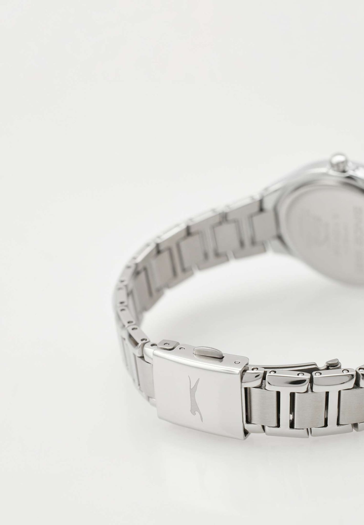 Часы Slazenger SL.09.2254.3.06 — это стильный и надежный аксессуар, который подчеркнет ваш индивидуальный образ. Корпус и браслет выполнены из инновационного суперметалла — сплава на основе меди с пониженным содержанием цинка и никеля, обладающего особой прочностью и долговечностью благодаря специальной технологии покрытия. Модель оснащена точным кварцевым механизмом, который обеспечивает стабильную работу и не требует ежедневного завода. Под прочным минеральным стекломМинеральное стеклоМинеральное стекло представляет собой искусственно выращенный минерал кварца. Такое стекло отличается особой устойчивостью к повреждениям и царапинам. Уступает по некоторым качествам сапфировому стеклу. расположен лаконичный розовый циферблат, придающий часам элегантный и современный вид. Стальной браслет с раскладной застёжкойРаскладная застёжкаТакой тип застёжки используется только на браслетах из металла. Она никогда не раскрывается полностью, происходит разделение на 2 и более частей. Раскладывающая застёжка снизит вероятность потери часов к минимуму. обеспечивает комфортную посадку. Диаметр корпуса составляет 32 мм, толщина — 8 мм, что делает часы аккуратными и удобными для повседневного ношения. Класс водозащиты 3 атмосферы защищает механизм от случайных брызг и капель дождя.