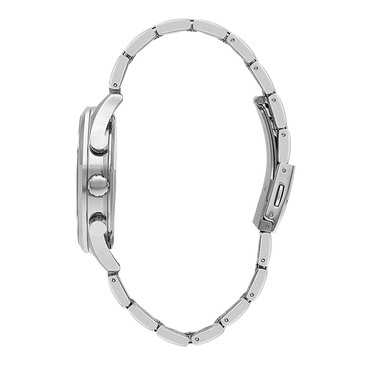 Часы Slazenger SL.09.2283.2.02 — это стильный и надежный аксессуар, который подчеркивает индивидуальность своего владельца. Корпус и браслет выполнены из прочного суперметалла — инновационного сплава на основе меди с пониженным содержанием цинка и никеля, дополненного специальным покрытием для долговечности и эстетики. Черный циферблат надежно защищен минеральным стекломМинеральное стеклоМинеральное стекло представляет собой искусственно выращенный минерал кварца. Такое стекло отличается особой устойчивостью к повреждениям и царапинам. Уступает по некоторым качествам сапфировому стеклу., устойчивым к царапинам и механическим повреждениям. Модель оснащена кварцевым механизмом, что гарантирует высокую точность хода. На отдельные циферблаты вынесены указатели 24-часового времени, даты и дня недели, что делает использование часов особенно удобным в повседневной жизни. Стальной браслет с раскладной застёжкойРаскладная застёжкаТакой тип застёжки используется только на браслетах из металла. Она никогда не раскрывается полностью, происходит разделение на 2 и более частей. Раскладывающая застёжка снизит вероятность потери часов к минимуму. обеспечивает комфортную посадку. Водозащита 5 АТМ позволяет не беспокоиться о случайных брызгах или дожде. Метки с люминесцентным покрытиемЛюминесцентное покрытиеПозволяет считывать показания времени в темноте. Производители наносят на стрелки, часовые индексы, безель или поверхность циферблата светонакопительный состав, дающий холодное свечение. удобно подсвечиваются в темноте после зарядки на свету. Диаметр корпуса составляет 43 мм, толщина — 13 мм, что обеспечивает комфортное ношение на запястье. Часы станут отличным выбором для повседневного использования или дополнения к деловому образу, а также послужат отличным подарком на любой праздник.