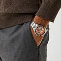 Мужские кварцевые часы Slazenger SL.09.2309.2.05 — это выразительный и функциональный аксессуар, сочетающий прочность, стиль и насыщенную комплектацию. Корпус и браслет выполнены из суперметалла, защищён минеральным стекломМинеральное стеклоМинеральное стекло представляет собой искусственно выращенный минерал кварца. Такое стекло отличается особой устойчивостью к повреждениям и царапинам. Уступает по некоторым качествам сапфировому стеклу.. Циферблат оранжевого цвета оформлен с вынесенными малыми циферблатами для индикации дня недели, даты и времени в 24-часовом формате. Стрелки и метки оснащены люминесцентным покрытиемЛюминесцентное покрытиеПозволяет считывать показания времени в темноте. Производители наносят на стрелки, часовые индексы, безель или поверхность циферблата светонакопительный состав, дающий холодное свечение., обеспечивающим хорошую читаемость в темноте. Заводная головка снабжена защитой, а задняя крышка — завинчивающаяся, что повышает надёжность конструкции. Браслет из суперметалла фиксируется на раскладной застёжкеРаскладная застёжкаТакой тип застёжки используется только на браслетах из металла. Она никогда не раскрывается полностью, происходит разделение на 2 и более частей. Раскладывающая застёжка снизит вероятность потери часов к минимуму., обеспечивая удобство и безопасность ношения. Водонепроницаемость 50 м позволяет использовать часы в повседневных условиях, защищая от случайных брызг и капель дождя. Модель подчёркивает индивидуальность владельца и идеально подходит как для повседневного, так и для делового образа.
