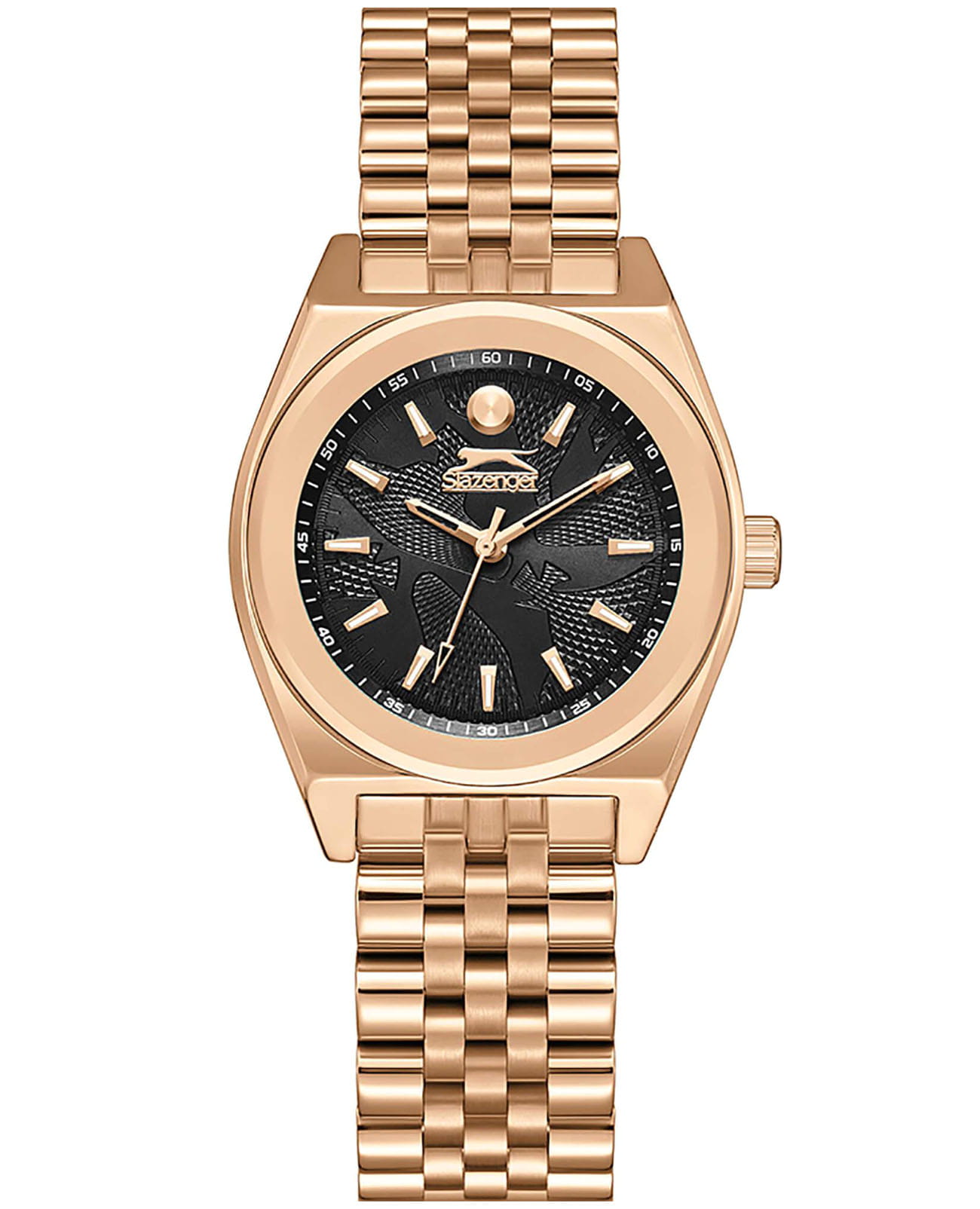 Женские кварцевые часы Slazenger SL.09.2376.3.04 – это сочетание элегантности, современного стиля и надёжности. Изящный корпус из суперметалла с IP-покрытиемIP-покрытиеМетод ионного напыления. Демонстрирует повышенную устойчивость к истиранию, окислению и химическим веществам. Под воздействием высокого давления и температуры около 1500°C молекулы металла надёжно соединяются с частицами корпуса часов. цвета розового золота, диаметром 32 мм и толщиной 9 мм, подчёркивает утончённость модели и делает их идеальным аксессуаром для любой ситуации – будь то деловая встреча, романтический вечер или повседневные выходы. Циферблат надёжно защищён минеральным стекломМинеральное стеклоМинеральное стекло представляет собой искусственно выращенный минерал кварца. Такое стекло отличается особой устойчивостью к повреждениям и царапинам. Уступает по некоторым качествам сапфировому стеклу., которое устойчиво к механическим повреждениям и сохраняет кристальную прозрачность. Браслет из суперметалла с IP-покрытиемIP-покрытиеМетод ионного напыления. Демонстрирует повышенную устойчивость к истиранию, окислению и химическим веществам. Под воздействием высокого давления и температуры около 1500°C молекулы металла надёжно соединяются с частицами корпуса часов. удобно облегает запястье и фиксируется с помощью раскладной застёжкиРаскладная застёжкаТакой тип застёжки используется только на браслетах из металла. Она никогда не раскрывается полностью, происходит разделение на 2 и более частей. Раскладывающая застёжка снизит вероятность потери часов к минимуму., обеспечивая надёжность и комфорт в повседневном ношении. Утончённый стиль, внимание к деталям и практичность делают эту модель идеальным выбором для современных женщин, ценящих эстетику и функциональность. Метки покрыты люминесцентным покрытиемЛюминесцентное покрытиеПозволяет считывать показания времени в темноте. Производители наносят на стрелки, часовые индексы, безель или поверхность циферблата светонакопительный состав, дающий холодное свечение., обеспечивающим отличную читаемость в темноте. Водозащита до 30 метров позволит защитить корпус от случайных брызг или капель дождя.