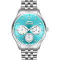 Женские кварцевые часы Slazenger — это элегантный и функциональный аксессуар. Корпус диаметром 34 мм и толщиной 11 мм выполнен из суперметалла. Циферблат голубого цвета оформлен индексами и стрелками, украшен фианитами. Циферблат защищён минеральным стекломМинеральное стеклоМинеральное стекло представляет собой искусственно выращенный минерал кварца. Такое стекло отличается особой устойчивостью к повреждениям и царапинам. Уступает по некоторым качествам сапфировому стеклу.. Механизм — кварцевый. Часы оснащены индикацией дня недели, даты и 12/24-часового формата времени. Часы оснащены браслетом из суперметалла с раскладной застёжкойРаскладная застёжкаТакой тип застёжки используется только на браслетах из металла. Она никогда не раскрывается полностью, происходит разделение на 2 и более частей. Раскладывающая застёжка снизит вероятность потери часов к минимуму.. Водонепроницаемость 50 м позволяет использовать часы в повседневных условиях. Гарантия — 12 месяцев. Идеальный выбор для тех, кто ценит стиль, функциональность и качество.