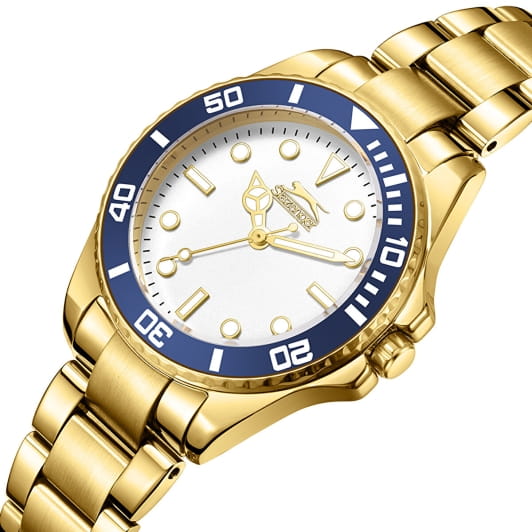 Женские кварцевые часы Slazenger — это элегантный аксессуар. Корпус диаметром 33 мм и толщиной 9 мм выполнен из суперметалла с IP-покрытиемIP-покрытиеМетод ионного напыления. Демонстрирует повышенную устойчивость к истиранию, окислению и химическим веществам. Под воздействием высокого давления и температуры около 1500°C молекулы металла надёжно соединяются с частицами корпуса часов.. Циферблат белого цвета оформлен индексами и стрелками. Циферблат защищён минеральным стекломМинеральное стеклоМинеральное стекло представляет собой искусственно выращенный минерал кварца. Такое стекло отличается особой устойчивостью к повреждениям и царапинам. Уступает по некоторым качествам сапфировому стеклу.. Механизм — кварцевый. Стрелки и метки с люминесцентным покрытиемЛюминесцентное покрытиеПозволяет считывать показания времени в темноте. Производители наносят на стрелки, часовые индексы, безель или поверхность циферблата светонакопительный состав, дающий холодное свечение., обеспечивающим хорошую читаемость в темноте. Часы оснащены браслетом из суперметалла с IP-покрытиемIP-покрытиеМетод ионного напыления. Демонстрирует повышенную устойчивость к истиранию, окислению и химическим веществам. Под воздействием высокого давления и температуры около 1500°C молекулы металла надёжно соединяются с частицами корпуса часов. и раскладной застёжкойРаскладная застёжкаТакой тип застёжки используется только на браслетах из металла. Она никогда не раскрывается полностью, происходит разделение на 2 и более частей. Раскладывающая застёжка снизит вероятность потери часов к минимуму.. Водонепроницаемость 50 м позволяет использовать часы в повседневных условиях. Гарантия — 12 месяцев. Идеальный выбор для тех, кто ценит стиль и качество.