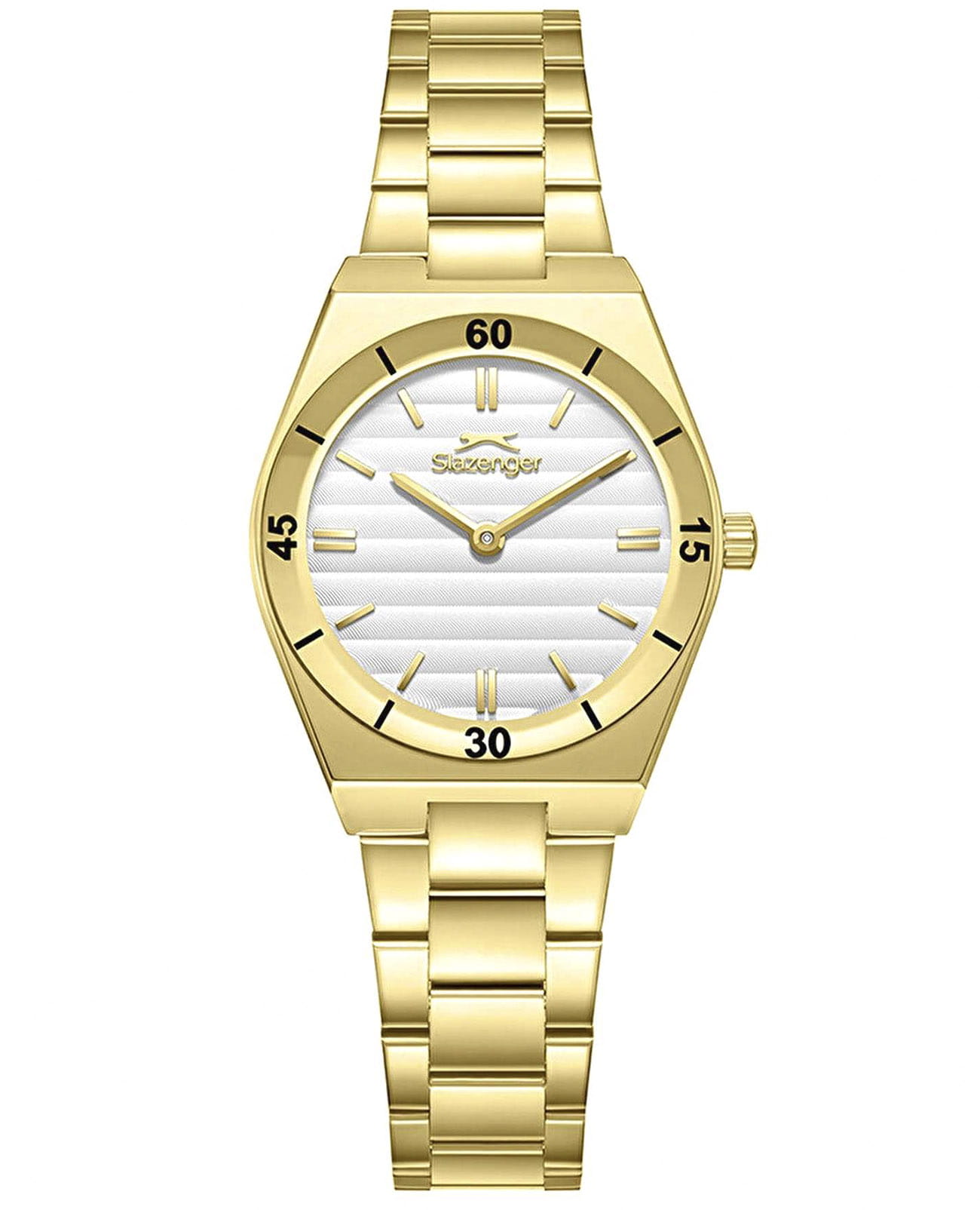 Женские кварцевые часы Slazenger — это элегантный аксессуар. Корпус диаметром 28 мм и толщиной 7,5 мм выполнен из суперметалла с IP-покрытиемIP-покрытиеМетод ионного напыления. Демонстрирует повышенную устойчивость к истиранию, окислению и химическим веществам. Под воздействием высокого давления и температуры около 1500°C молекулы металла надёжно соединяются с частицами корпуса часов.. Циферблат серебристого цвета оформлен индексами и стрелками. Циферблат защищён минеральным стекломМинеральное стеклоМинеральное стекло представляет собой искусственно выращенный минерал кварца. Такое стекло отличается особой устойчивостью к повреждениям и царапинам. Уступает по некоторым качествам сапфировому стеклу.. Механизм — кварцевый. Часы оснащены браслетом из суперметалла с IP-покрытиемIP-покрытиеМетод ионного напыления. Демонстрирует повышенную устойчивость к истиранию, окислению и химическим веществам. Под воздействием высокого давления и температуры около 1500°C молекулы металла надёжно соединяются с частицами корпуса часов. на раскладной застёжкеРаскладная застёжкаТакой тип застёжки используется только на браслетах из металла. Она никогда не раскрывается полностью, происходит разделение на 2 и более частей. Раскладывающая застёжка снизит вероятность потери часов к минимуму.. Водонепроницаемость 50 м позволяет использовать часы в повседневных условиях. Гарантия — 12 месяцев. Идеальный выбор для тех, кто ценит стиль и качество.