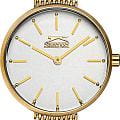 Женские кварцевые часы Slazenger — это стильный аксессуар с круглым корпусом и изящным браслетом миланского плетения. Корпус диаметром 30 мм и толщиной 8 мм выполнен из суперметалла с IP-покрытиемIP-покрытиеМетод ионного напыления. Демонстрирует повышенную устойчивость к истиранию, окислению и химическим веществам. Под воздействием высокого давления и температуры около 1500°C молекулы металла надёжно соединяются с частицами корпуса часов.. Циферблат белого цвета оформлен индексами и стрелками. Циферблат защищён минеральным стекломМинеральное стеклоМинеральное стекло представляет собой искусственно выращенный минерал кварца. Такое стекло отличается особой устойчивостью к повреждениям и царапинам. Уступает по некоторым качествам сапфировому стеклу.. Механизм — кварцевый. Часы оснащены браслетом из суперметалла с IP-покрытиемIP-покрытиеМетод ионного напыления. Демонстрирует повышенную устойчивость к истиранию, окислению и химическим веществам. Под воздействием высокого давления и температуры около 1500°C молекулы металла надёжно соединяются с частицами корпуса часов. миланского плетения на раскладной застёжкойРаскладная застёжкаТакой тип застёжки используется только на браслетах из металла. Она никогда не раскрывается полностью, происходит разделение на 2 и более частей. Раскладывающая застёжка снизит вероятность потери часов к минимуму.. Водонепроницаемость 30 м позволяет использовать часы в повседневных условиях. Идеальный выбор для тех, кто ценит элегантность и качество.