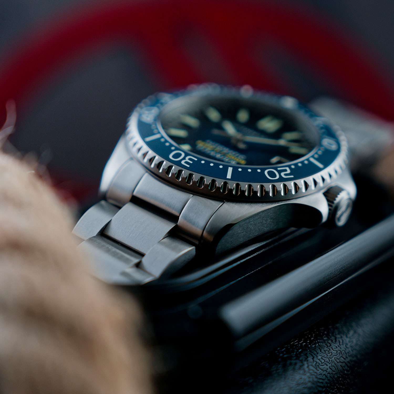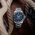 Мужские дайверские часы Spinnaker TESEI SP-5084-55 с круглым корпусом диаметром 43 мм из легкого и прочного , вдохновленный наследием итальянского морского офицера Тезео Тезей. Модель оснащена японским автоматическим механизмом с автоподзаводом, обеспечивающим индикацию даты в положении 3 часа и запас хода до 42 часов. Синий циферблат с гранитоподобной текстурой и люминесцентными маркерами Super-LumiNova®Люминесцентное покрытиеПозволяет считывать показания времени в темноте. Производители наносят на стрелки, часовые индексы, безель или поверхность циферблата светонакопительный состав, дающий холодное свечение. обеспечивает отличную читаемость даже в условиях слабого освещения. Защиту циферблата обеспечивает устойчивое к царапинам сапфировое стеклоСапфировое стеклоПрочный и надёжный материал из кристалла сапфира синтетического происхождения, характеризующийся особой твёрдостью и устойчивостью к царапинам и повреждениям. с антибликовым покрытием, а водонепроницаемость 20 ATM (200 метров) делает часы подходящими для дайвинга и водных видов спорта. Титановый браслет шириной 22 мм с раскладной застежкойРаскладная застёжкаТакой тип застёжки используется только на браслетах из металла. Она никогда не раскрывается полностью, происходит разделение на 2 и более частей. Раскладывающая застёжка снизит вероятность потери часов к минимуму. и системой безопасности обеспечивает удобную посадку на запястье. Дизайн модели сочетает в себе винтажную эстетику золотой эры дайвинга с современными технологиями, предлагая идеальный баланс функциональности и стиля.