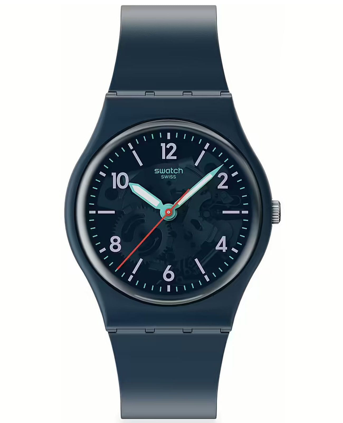 Часы Swatch  SO28N118 — это стильный и современный аксессуар, который идеально подходит для повседневного ношения. Они имеют классический дизайн корпуса и необычный цвет стекла. Корпус часов выполнен из высококачественного темно-синего  биоматериала, что делает их легкими и удобными. Циферблат полупрозрачный, можно наблюдать механизм часов, украшен арабскими цифрами контрастного цвета. Стекло часов изготовлено из прочного биоматериала, устойчивого к царапинам и ударам. Ремешок часов  выполнен из биоматериала и имеет регулируемую длину, на классической застежке. Внутри часов установлен надежный кварцевый механизм, который обеспечивает точность хода. Эти часы водонепроницаемы до 30 метров, что позволяет не беспокоиться о случайных брызгах или дождевых каплях. Swatch SO28N118 — это идеальный выбор для тех, кто ценит сочетание стиля, комфорта и функциональности в одном аксессуаре.