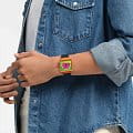 Swatch Square Bioceramic Standard SO34Z101 "BREAK TIME" - это оригинальные квадратные часы с корпусом 41,8*41,8 мм из многоцветной биокерамики. Модель оснащена кварцевым механизмом, окошком даты и дня недели, водонепроницаемостью до 20 метров. Часы имеют черный матовый ремешок из биоматериала, оранжевый корпус и стекло из биоматериала. Черные стрелки с люминесцентным покрытиемЛюминесцентное покрытиеПозволяет считывать показания времени в темноте. Производители наносят на стрелки, часовые индексы, безель или поверхность циферблата светонакопительный состав, дающий холодное свечение.. Эта экологичная модель унисекс сочетает инновационные материалы с ярким дизайном, вдохновленным оригинальным Swatch 1983 года, и подходит для тех, кто ценит минимализм и заботу об окружающей среде.