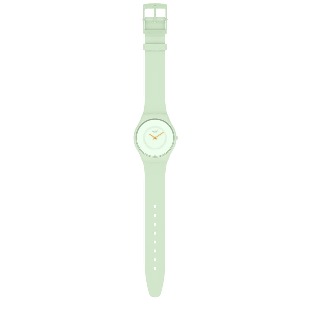 Часы Swatch SS09G101 — это стильный и современный аксессуар для тех, кто ценит лёгкость и комфорт. Часы идеально подойдут как для мужчин, так и для женщин. Зеленый принт на циферблате и биостекло — вот особенность этих тонких часов. Однотонный матово-зеленый корпус из биокерамикиБиокерамикаБиокерамика — это материал, который на две трети состоит из керамики, на одну треть — из биопластика. Он сочетает в себе лучшие качества обоих материалов и обладает прочностью и шелковистой на ощупь текстурой. дополнен матово-зеленым ремешком из биоматериала и пластиковой пряжкой. Водозащита 30 метров делает часы практичными для повседневного использования. Эти часы подойдут для повседневного ношения и станут ярким акцентом в вашем наряде.