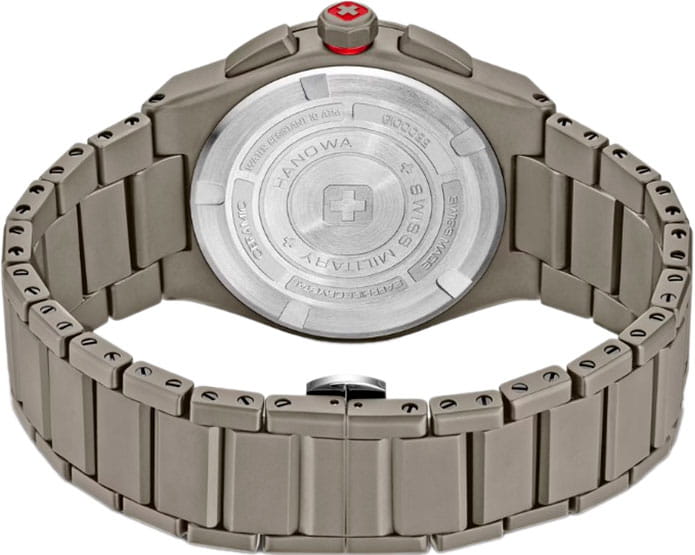 Мужские швейцарские часы с хронографомХронографФункция позволяет измерять отрезки времени с особой точностью: часы, минуты, секунды. Верным признаком хронографа является наличие на циферблате 3 дополнительных окошек-счётчиков. Swiss Military Hanowa Sidewinder Ceramic SMWGI0002285 станут отличным выбором для тех, кто ценит стильный дизайн и функциональность в одном аксессуаре. Корпус диаметром 43 мм сбалансирован и элегантен. Сапфировое стеклоСапфировое стеклоПрочный и надёжный материал из кристалла сапфира синтетического происхождения, характеризующийся особой твёрдостью и устойчивостью к царапинам и повреждениям. с антибликовым покрытием защищает циферблат от царапин и обеспечивает отличную читаемость при любом освещении. Керамический браслет с застежкой бабочкаЗастёжка "бабочка"Такой вид застёжки дополняется предохранителями, помогающими избежать случайного раскрытия браслета. Обладают изящным исполнением. идеально дополняют дизайн часов, обеспечивая комфортное ношение. Люминесцентное покрытиеЛюминесцентное покрытиеПозволяет считывать показания времени в темноте. Производители наносят на стрелки, часовые индексы, безель или поверхность циферблата светонакопительный состав, дающий холодное свечение. стрелок и меток позволит вам следить за временем даже в полной темноте. Метки выполнены в виде штрихов. Окошко даты в положении 4 часа.