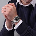 Браслет из нержавеющей стали дополнен раскладной застёжкойРаскладная застёжкаТакой тип застёжки используется только на браслетах из металла. Она никогда не раскрывается полностью, происходит разделение на 2 и более частей. Раскладывающая застёжка снизит вероятность потери часов к минимуму., обеспечивающей удобную фиксацию на запястье. Водонепроницаемость делает модель надёжным аксессуаром для повседневного использования.