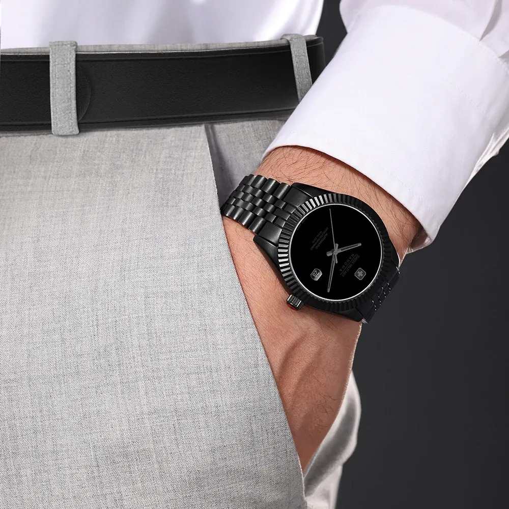Часы Swiss Military Hanowa Dark Night SMWGL0005530— это образец швейцарской точности и изысканного стиля. Эти механические часы с автоподзаводом оснащены калибром Soprod P024, который обеспечивает надежную работу механизма. Элегантный корпус диаметром 41 мм выполнен из прочной стали с черным IP-покрытиемIP-покрытиеМетод ионного напыления. Демонстрирует повышенную устойчивость к истиранию, окислению и химическим веществам. Под воздействием высокого давления и температуры около 1500°C молекулы металла надёжно соединяются с частицами корпуса часов. и украшен рифленым безелемБезельВнешний ободок, закрепляющий стекло. В спортивных часах так называется поворотное кольцо с делениями на циферблате, выполняет роль таймера – замеряет отрезки времени на шкале. Неподвижный безель – элемент декора. Однонаправленно вращающийся безель на дайверских часах позволяет фиксировать моменты погружения и выныривания на поверхность.. Черный циферблат защищен  сапфировым стекломСапфировое стеклоПрочный и надёжный материал из кристалла сапфира синтетического происхождения, характеризующийся особой твёрдостью и устойчивостью к царапинам и повреждениям., которое устойчиво к царапинам и сохраняет безупречный вид. Стрелки имеют люминесцентное покрытиеЛюминесцентное покрытиеПозволяет считывать показания времени в темноте. Производители наносят на стрелки, часовые индексы, безель или поверхность циферблата светонакопительный состав, дающий холодное свечение., которое обеспечивает видимость в темноте после кратковременной зарядки на свету. Окошко даты с увеличительным стеклом расположено в положении 3 часа, а фирменный логотип Swiss Military Hanowa находится в позиции 12 часов. Заводная головка с рифлением украшена фирменным логотипом, добавляя часам изысканный акцент. Прозрачная задняя крышка позволяет наблюдать за работой механизма, подчеркивая внимание к деталям. Завершает образ стальной браслет с черным IP-покрытиемIP-покрытиеМетод ионного напыления. Демонстрирует повышенную устойчивость к истиранию, окислению и химическим веществам. Под воздействием высокого давления и температуры около 1500°C молекулы металла надёжно соединяются с частицами корпуса часов. и раскладной застёжкойРаскладная застёжкаТакой тип застёжки используется только на браслетах из металла. Она никогда не раскрывается полностью, происходит разделение на 2 и более частей. Раскладывающая застёжка снизит вероятность потери часов к минимуму., который удобно сидит на запястье и обеспечивает надежную фиксацию. Часы обладают водозащитой уровня 100WR, что делает их подходящими для повседневного использования и активного образа жизни.