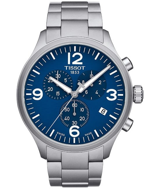 Tissot Chrono XL — это великолепные часы для тех, кто ищет ультрамодный хронограф со спортивным дизайном, изготовленный по швейцарским технологиям Этот спортивный хронограф - один из самых крупных в коллекции Tissot, доступный по невероятно привлекательной цене! Мужские кварцевые наручные часы Корпус этих часов крупного размера (45 мм) и выполнен из нержавеющей стали L316 Модель имеет устойчивое к царапинам сапфировое стекло, браслет из нержавеющей стали , синий циферблат Калибр механизма: ETA G10212 Класс водозащиты: 100 м / 10 АТМ (разрешается плавать ,душ, брызги) Дополнительные функции и особенности: 30-минутный счетчик и счетчик десятых долей секунд, центральная 60-секундная стрелка хронографа, суммарный и сплит-хронограф. Раскладная застежка с кнопками.
