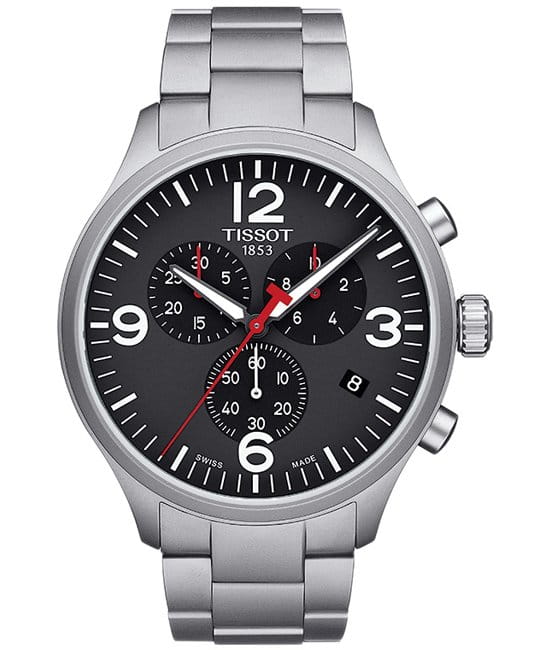 Tissot Chrono XL - это великолепные часы для тех, кто ищет ультрамодный хронограф со спортивным дизайном, изготовленный по швейцарским технологиям Этот спортивный хронограф - один из самых крупных в коллекции Tissot, доступный по невероятно привлекательной цене. Мужские кварцевые наручные часы Корпус этих часов крупного размера (45 мм) и выполнен из нержавеющей стали L316 Модель имеет устойчивое к царапинам сапфировое стекло, браслет из нержавеющей стали , черный циферблат Калибр механизма: ETA G10212, класс водозащиты: 100 м / 10 АТМ (разрешается плавать, душ, брызги). Дополнительные функции и особенности: 30-минутный счетчик и счетчик десятых долей секунд, центральная 60-секундная стрелка хронографа, суммарный и сплит-хронограф. Раскладная застежка с кнопками