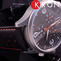 Мужские кварцевые наручные часы Корпус этих часов крупного размера (45 мм) и выполнен из нержавеющей стали L316 Модель имеет устойчивое к царапинам сапфировое стекло, кожаный  ремешок , черный циферблат Калибр механизма: ETA G10212 Класс водозащиты: 100 м / 10 АТМ (разрешается плавать ,душ, брызги) Дополнительные функции и особенности: 30-минутный счетчик и счетчик десятых долей секунд, центральная 60-секундная стрелка хронографа, суммарный и сплит-хронограф Стандартная застежка