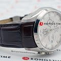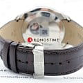 Элегантный дизайн идеальным образом сочетается с высоким качеством современных материалов. Часы комплектуются автоматическим калибром ETA C01.211 швейцарского производства, который отличается запасом хода до 45 часов. Приобщиться к традициям часового мастерства можно благодаря окошку в задней крышке стального корпуса. Сапфировое стекло с антибликовым покрытием. Коричневый ремешок из натуральной кожей с тиснением под кожу аллигатора. Люминесцентная подсветкаЛюминесцентное покрытиеПозволяет считывать показания времени в темноте. Производители наносят на стрелки, часовые индексы, безель или поверхность циферблата светонакопительный состав, дающий холодное свечение.. Секундомер, хронографХронографФункция позволяет измерять отрезки времени с особой точностью: часы, минуты, секунды. Верным признаком хронографа является наличие на циферблате 3 дополнительных окошек-счётчиков., календарь. . Габариты: 43 x 43 x 14,8 мм.