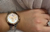 Окошко даты. Перламутровый циферблат. Дополнительные счётчики хронографа. Высокоточный кварцевый механизм.